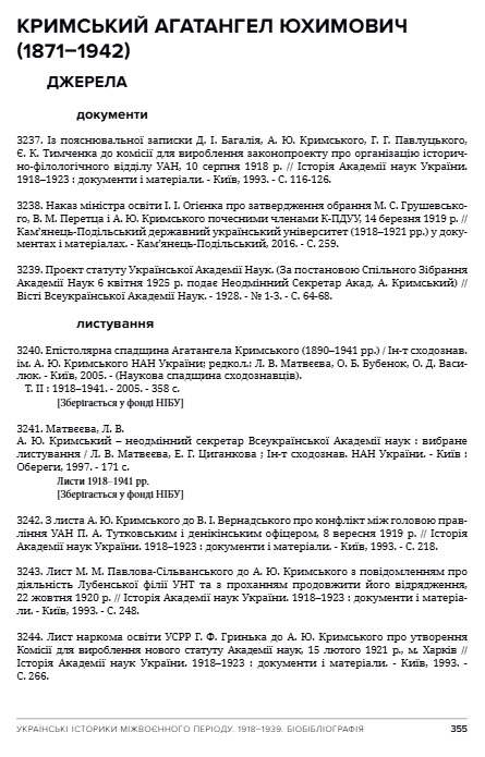 Епістолярна спадщина Агатангела Кримського (1890–1941 рр.) / Ін-т сходознав. ім. А. Ю. Кримського НАН України; редкол.: Л. В. Матвєєва, О. Б. Бубенок, О. Д. Васи-люк. – Київ, 2005. – (Наукова спадщина сходознавців).