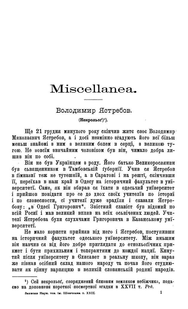 В тому ж 29-му томі «Записок НТШ» вміщено некролог пам’яті Володимира Ястребова, автором якого був Я. Шульгин.
