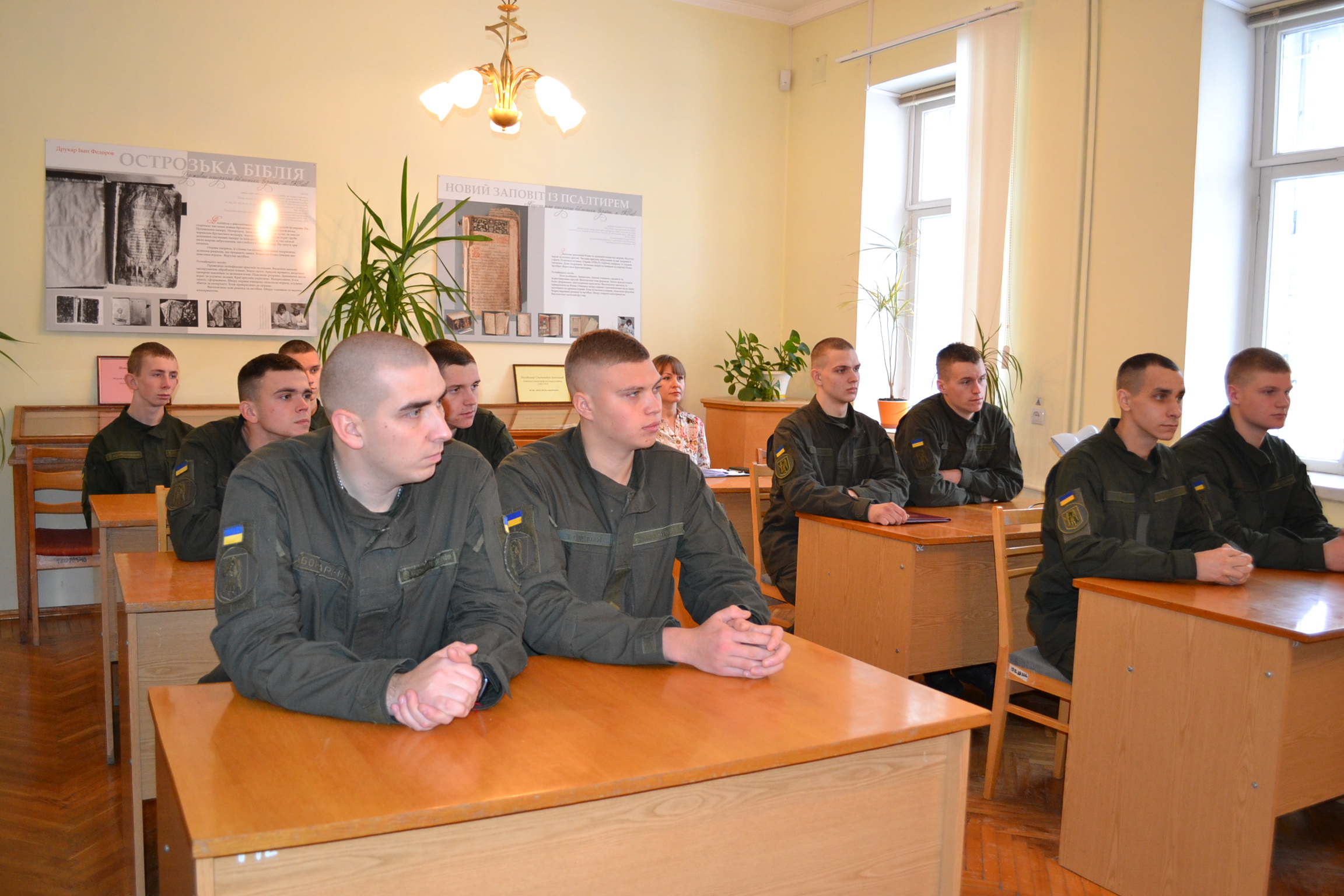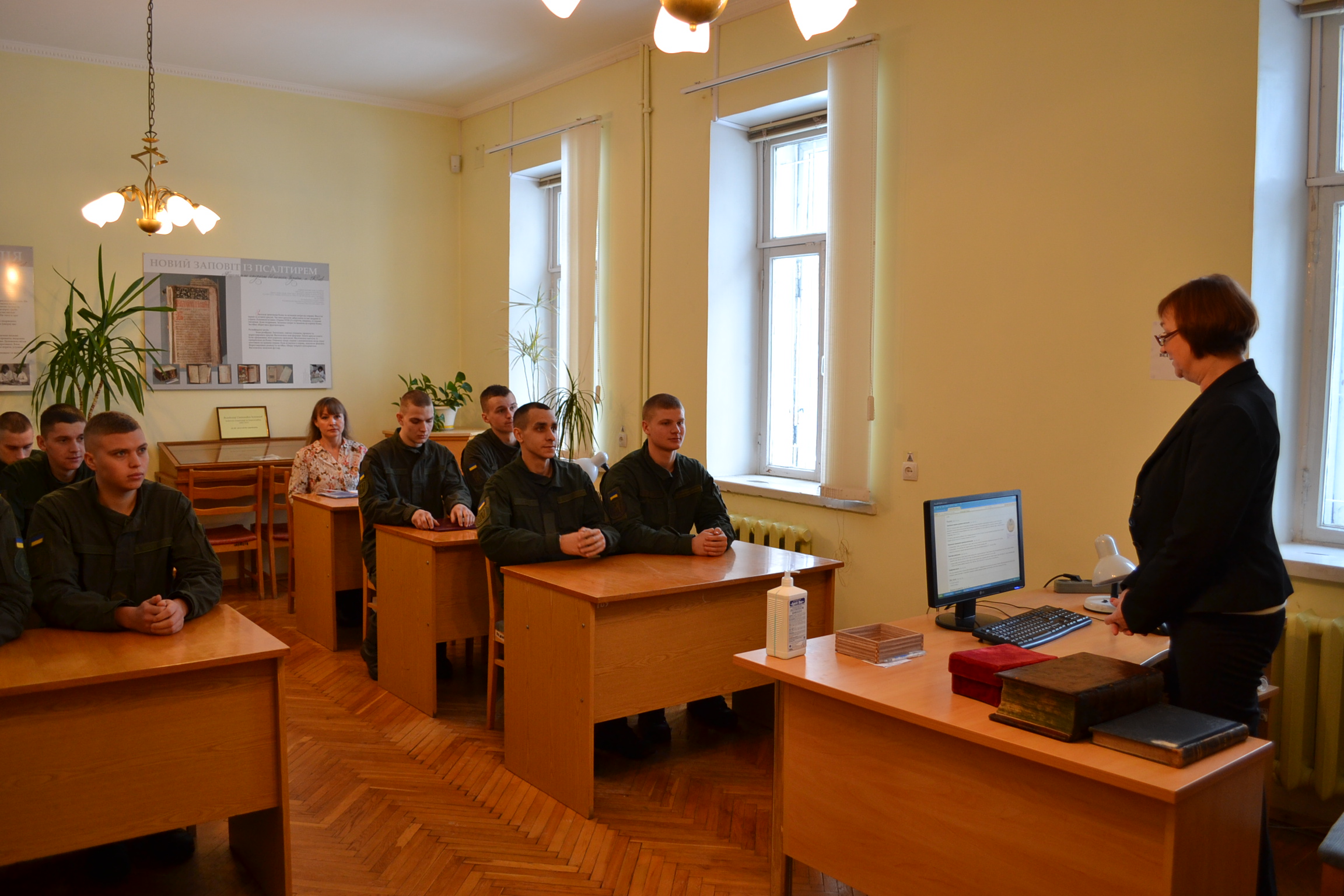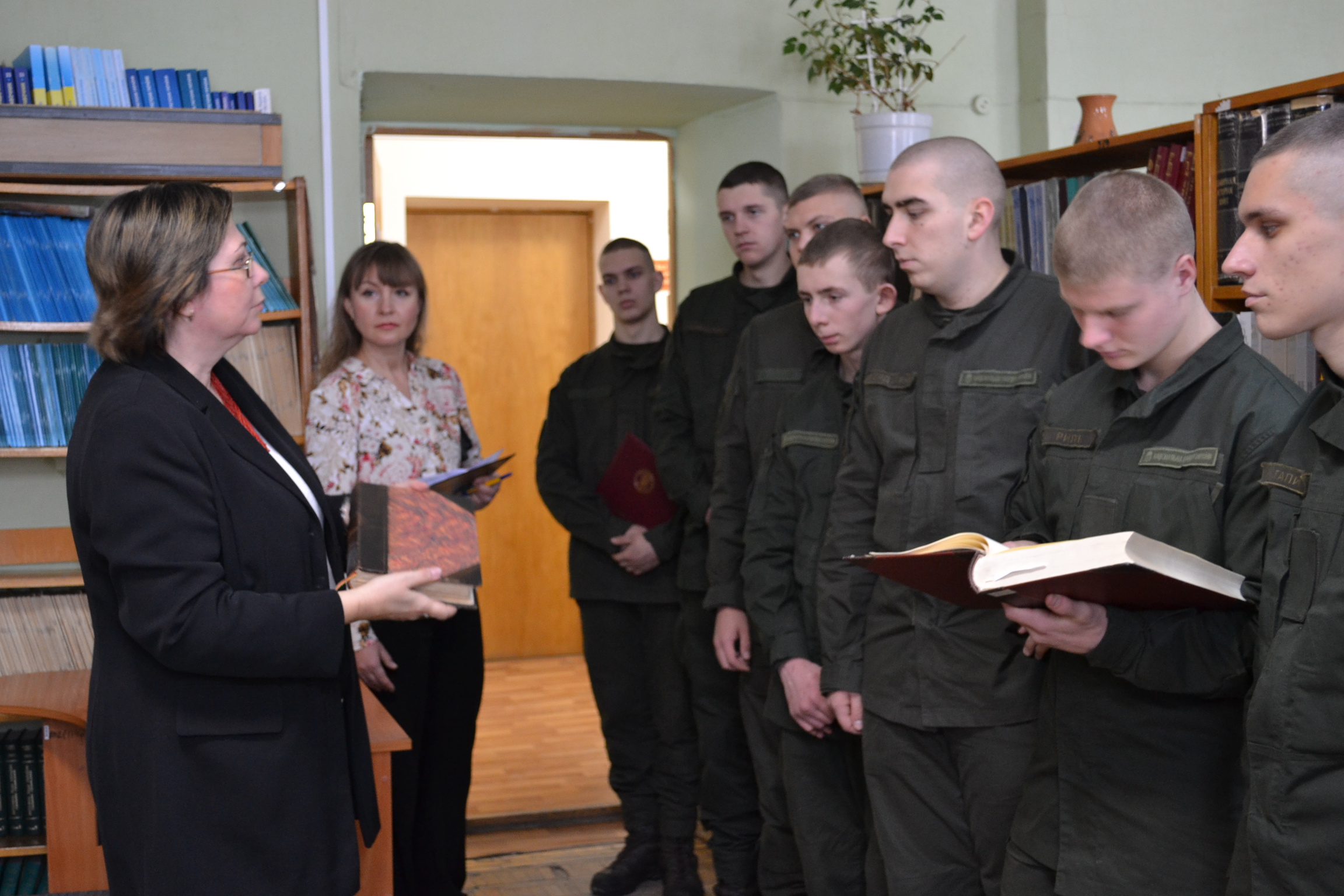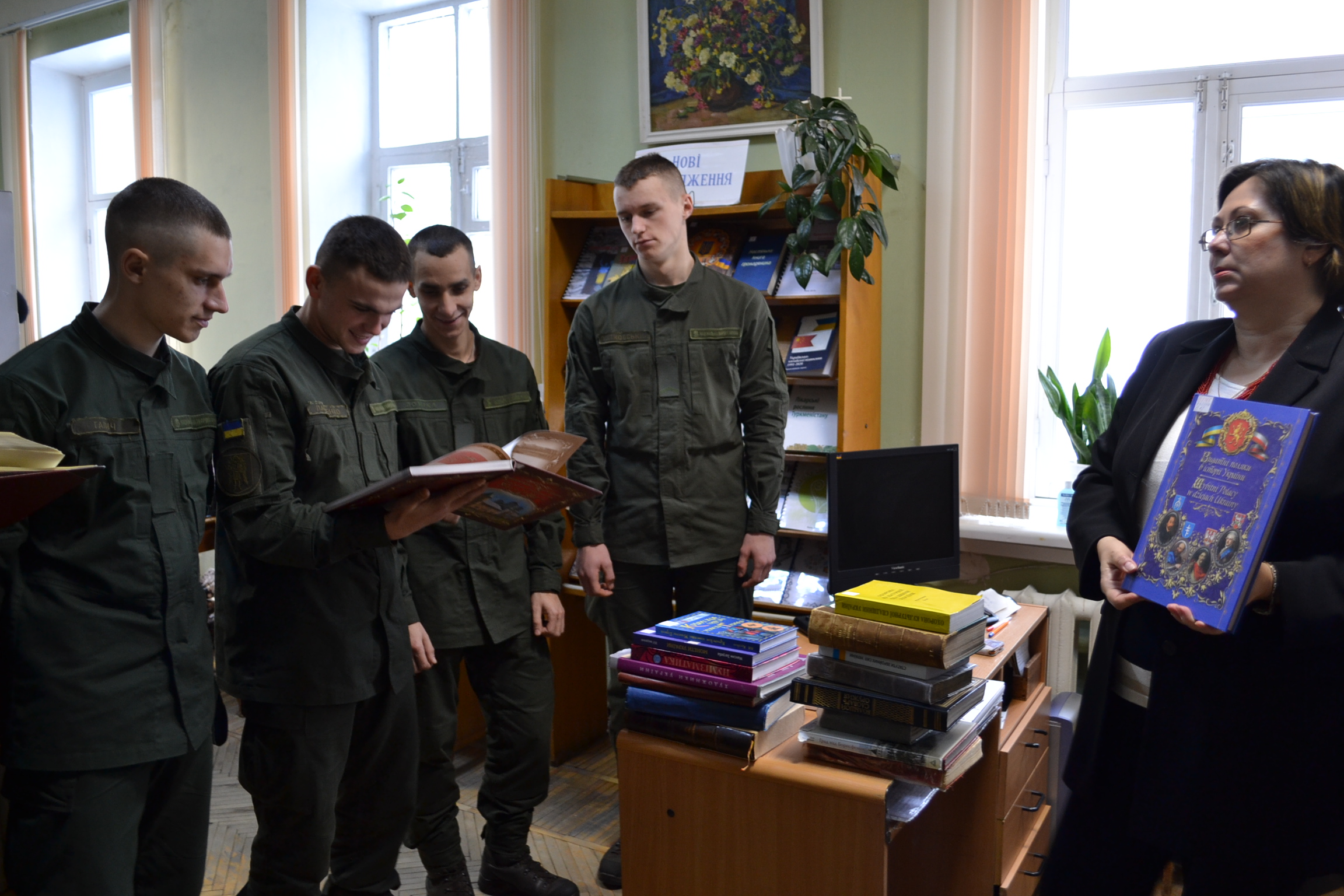 З метою патріотичного виховання та формування почуття національної гідності військовослужбовців, які чесно і самовіддано виконують важливі державні завдання з охорони громадського порядку в столиці нашої держави – м. Києві, Світлана Плюта провела ознайомчу екскурсію книгозбірнею та огляд книжкових виставок Бібліотеки.