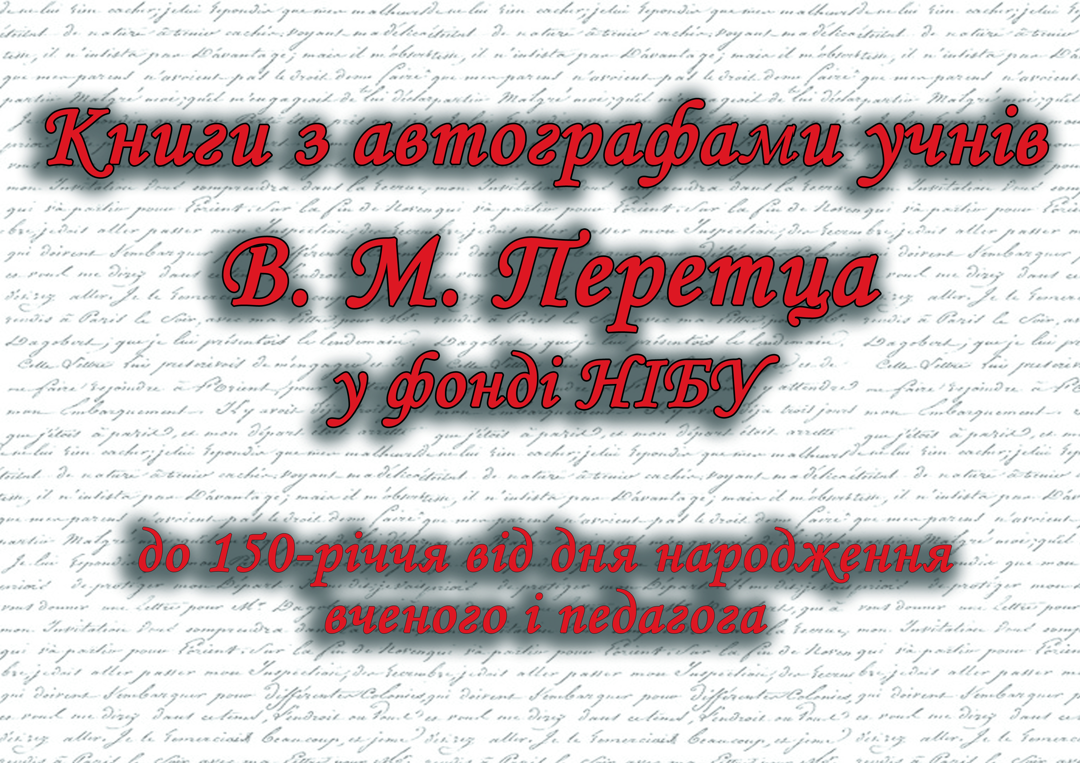 Запрошуємо 30 січня о 16:00 до читальної зали Науково-дослідного відділу стародруків, цінних та рідкісних видань (1 поверх, кімната 9) на презентацію книжкової виставки до 150-річчя від дня народження вченого і педагога Володимира Миколайовича Перетца.