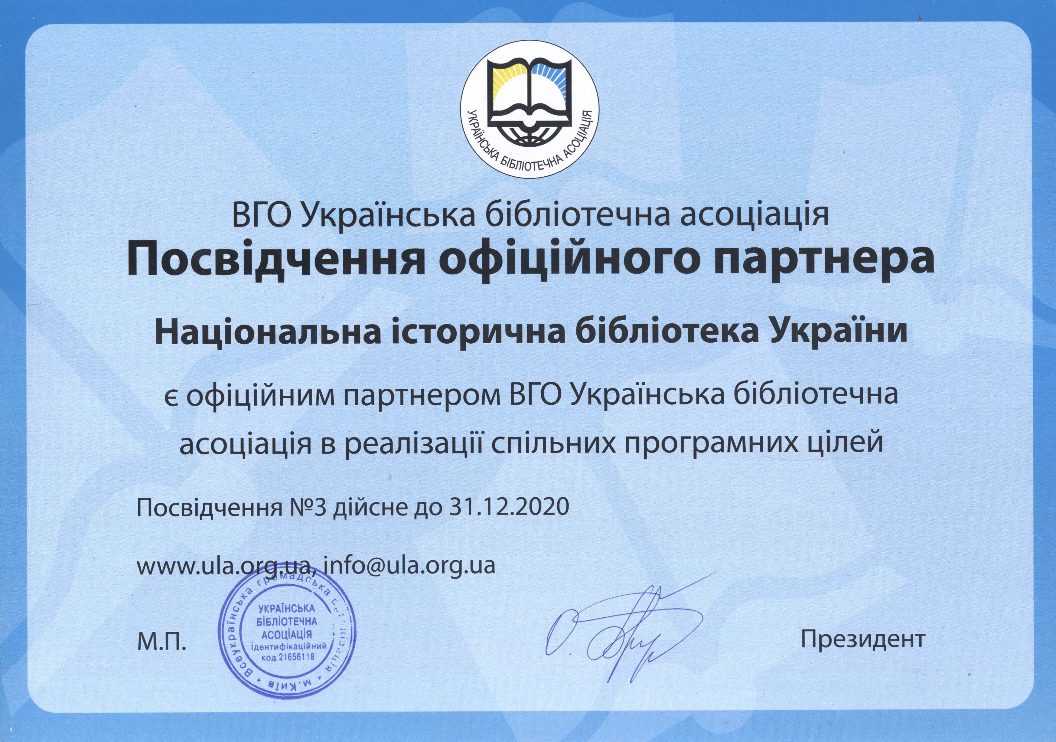 Національна історична бібліотека України офіційний партнер Всеукраїнської громадської організації «Українська бібліотечна асоціація» в реалізації спільних програмних цілей