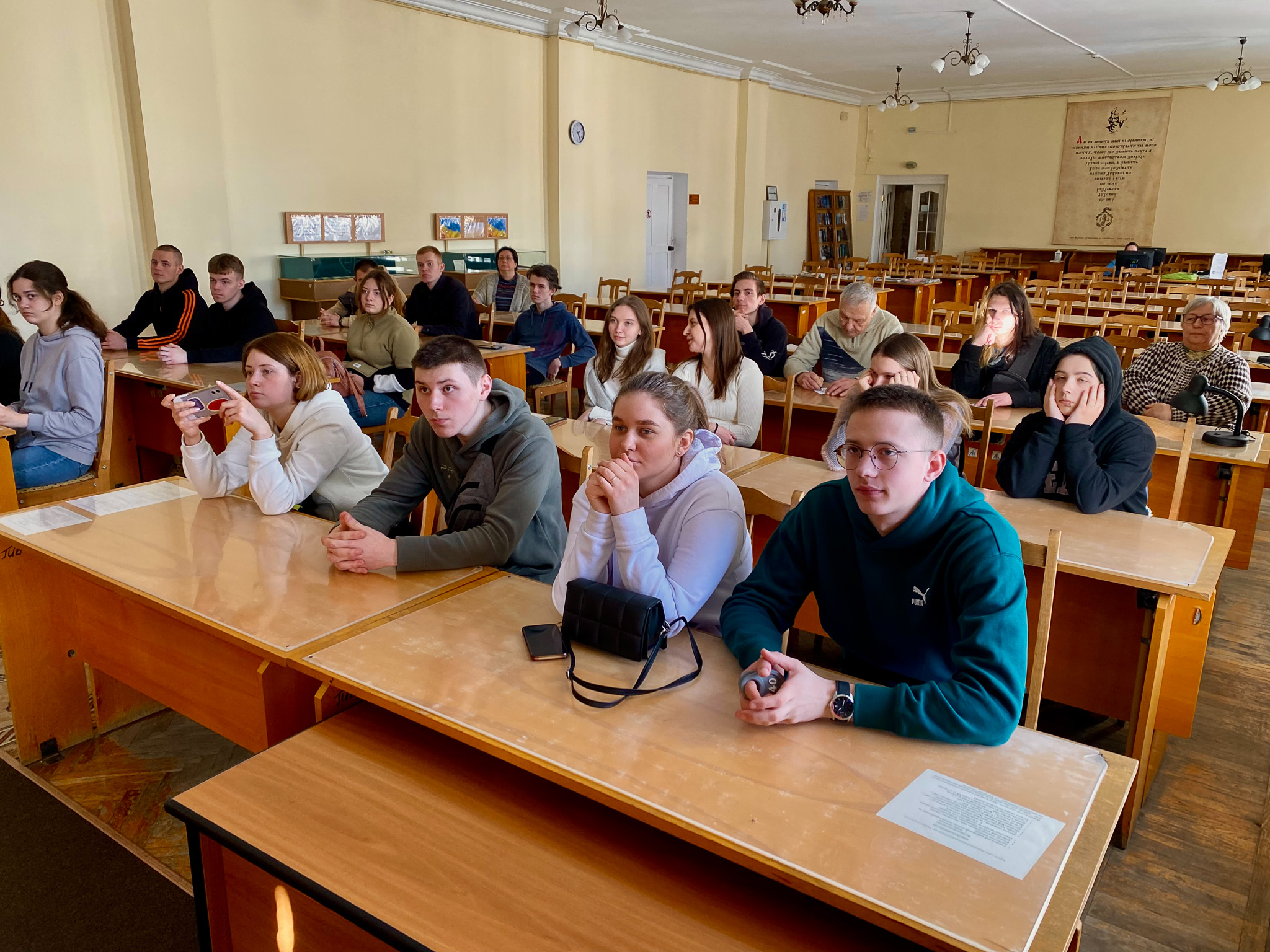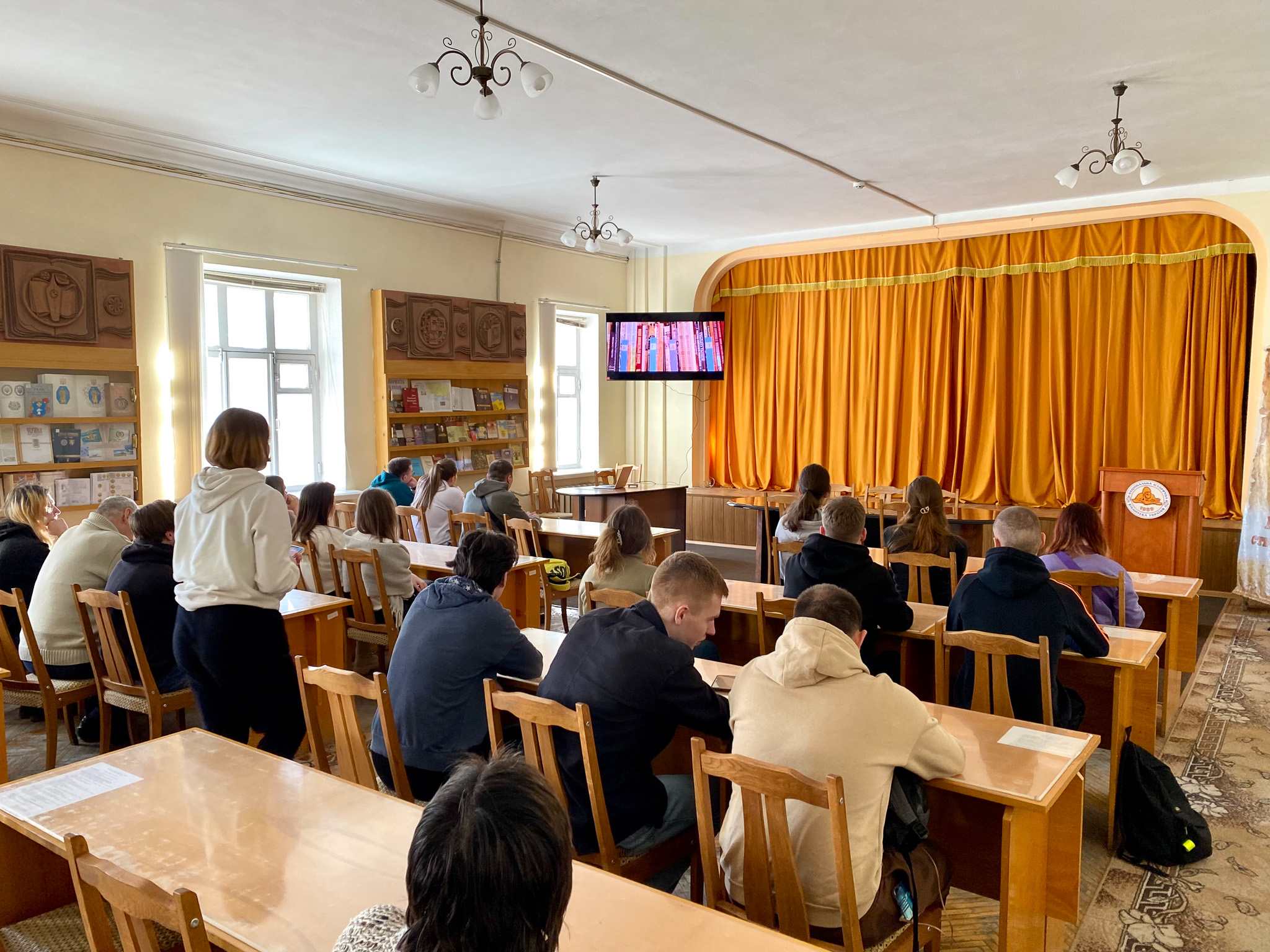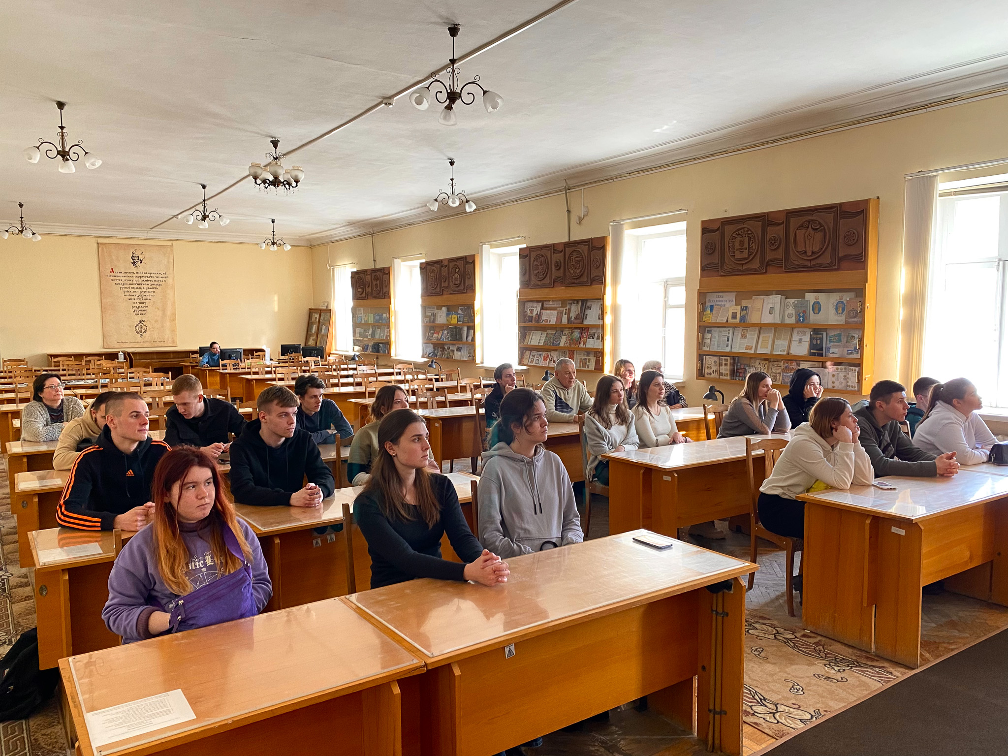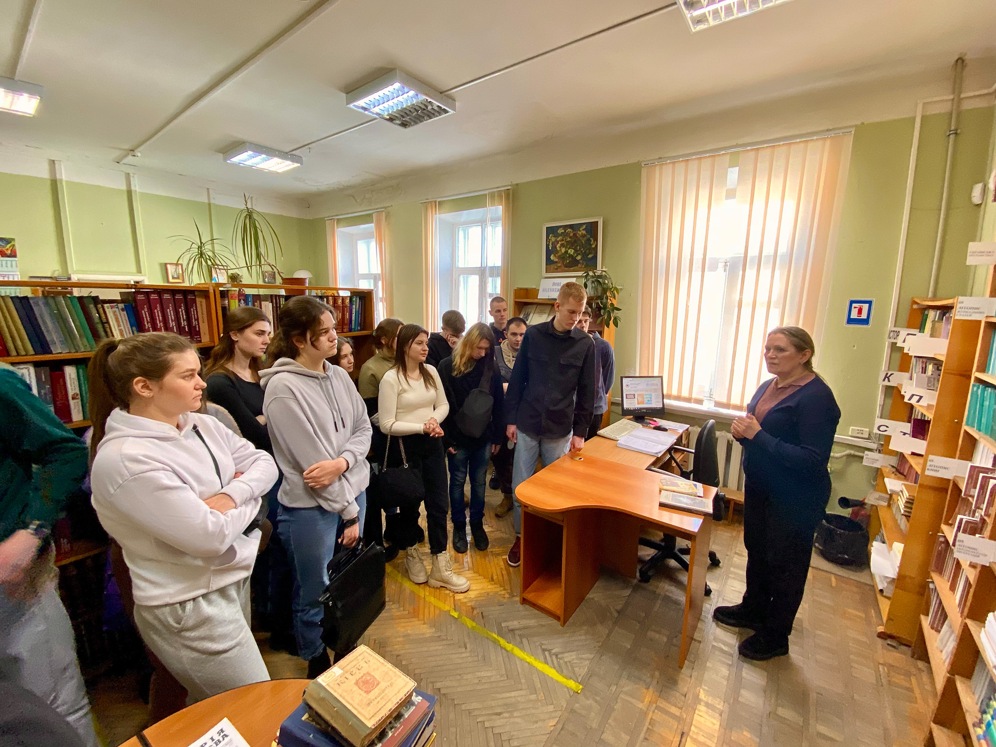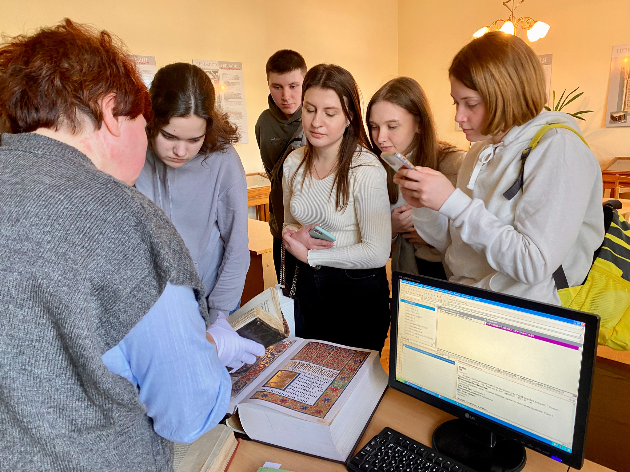 2 березня 2023 року в Національній історичній бібліотеці України була проведена лекція-екскурсія для студентів (спеціальність 029 «Інформаційна, бібліотечна та архівна справа») Національного транспортного університету у супроводженні викладачів кафедри інформаційно-аналітичної діяльності та інформаційної безпеки НТУ Катерини Михайлівни Алєксєєнко та к.і.н. Юрія Івановича Палехи. Метою екскурсії було ознайомлення відвідувачів з основною діяльністю книгозбірні. Зі вступним словом гостей привітав в. о. завідувача відділу соціокультурних комунікацій Кирило Русанівський. Студенти дізнались про основні послуги бібліотеки та переглянули відеоролик про історію НІБУ. Співробітниці відділу довідково-бібліографічної та науково-інформаційної роботи Оксана Чугіна та Алла Новицька презентували довідково-енциклопедичні видання із фонду НІБУ та продемонстрували електронні колекції проєкту «Історична спадщина України» на вебсайті бібліотеки. Зав. науково-дослідного відділу стародруків, цінних та рідкісних видань Світлана Смирнова ознайомила студентів з унікальними стародруками, які зберігаються у фонді НІБУ.