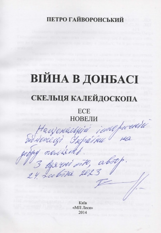 Національна історична бібліотека України висловлює щиру подяку письменнику, краєзнавцю Донецького краю Петру Євгеновичу Гайворонському за подарунок бібліотеці!