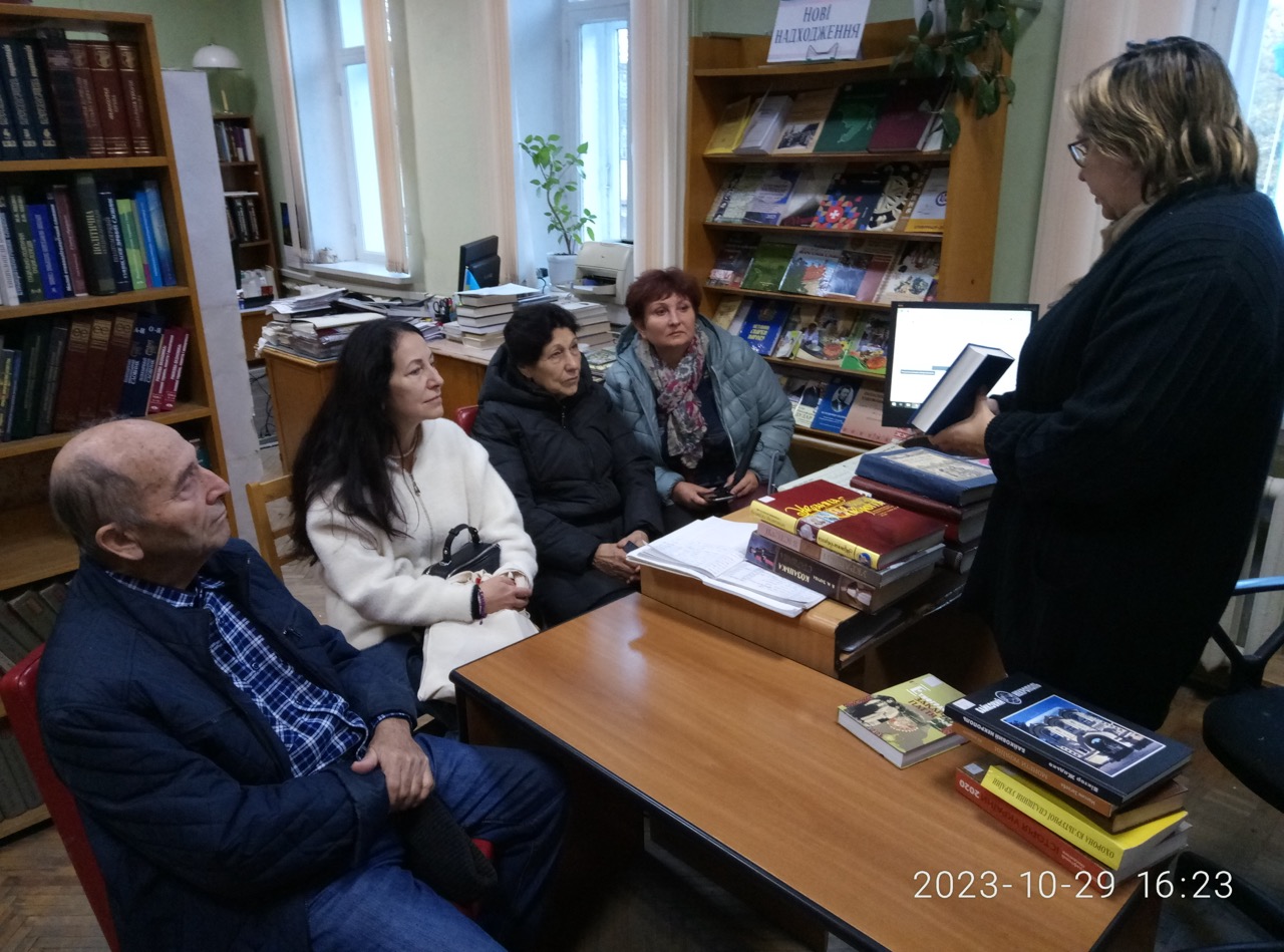 Фахівцями Національної історичної бібліотеки України проведено оглядову лекцію‑екскурсію для групи внутрішньо-переміщених осіб з 4 осіб: краєзнавців з м. Олешки Херсонської обл та Наталії Никифорової – провідного бібліотекаря Олешківської міської бібліотеки № 3, Центру культури і дозвілля Олешківської міської ради (Олешківської військової адміністрації).