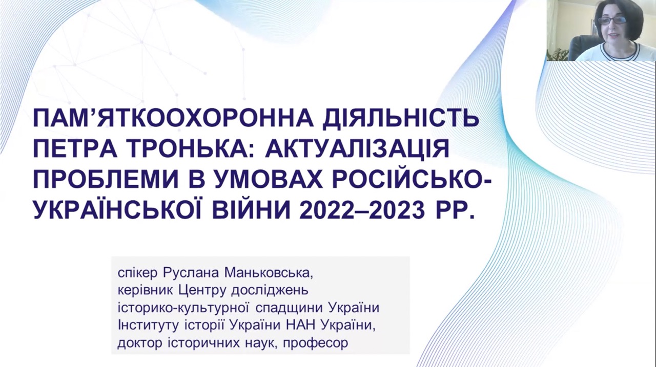 Національна історична бібліотека України за сприяння Міністерства культури та інформаційної політики України 8 листопада 2023 року провела Всеукраїнську науково-практичну конференцію «Бібліотека. Люди. Війна. Втрати і звершення» у межах VІІ Краєзнавчих читань пам’яті Петра Тронька. Співорганізаторами заходу виступили Національна спілка краєзнавців, Центр досліджень історико-культурної спадщини України Інституту історії України НАН України, Кафедра інформаційних технологій Київського національного університету культури і мистецтв. У конференції взяли участь представники державних органів влади, культурно-освітніх закладів, наукових бібліотек національного, державного, регіонального значення, публічних бібліотек, громадських організацій, а також дослідники і краєзнавці-аматори.