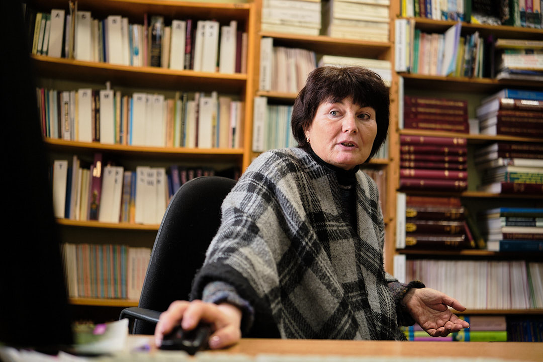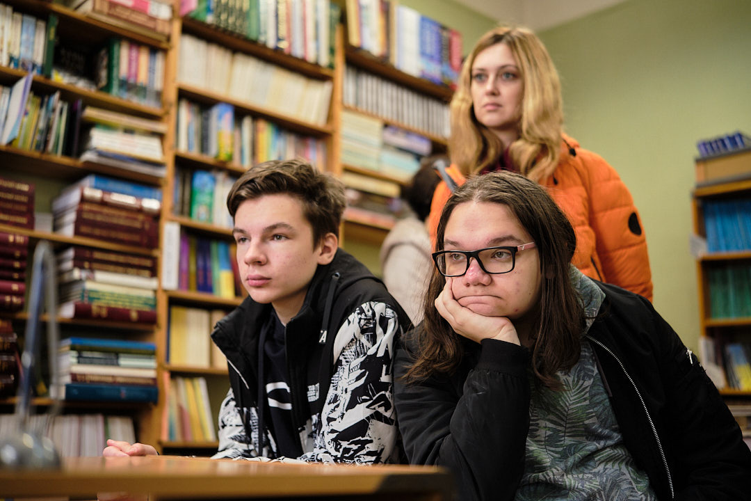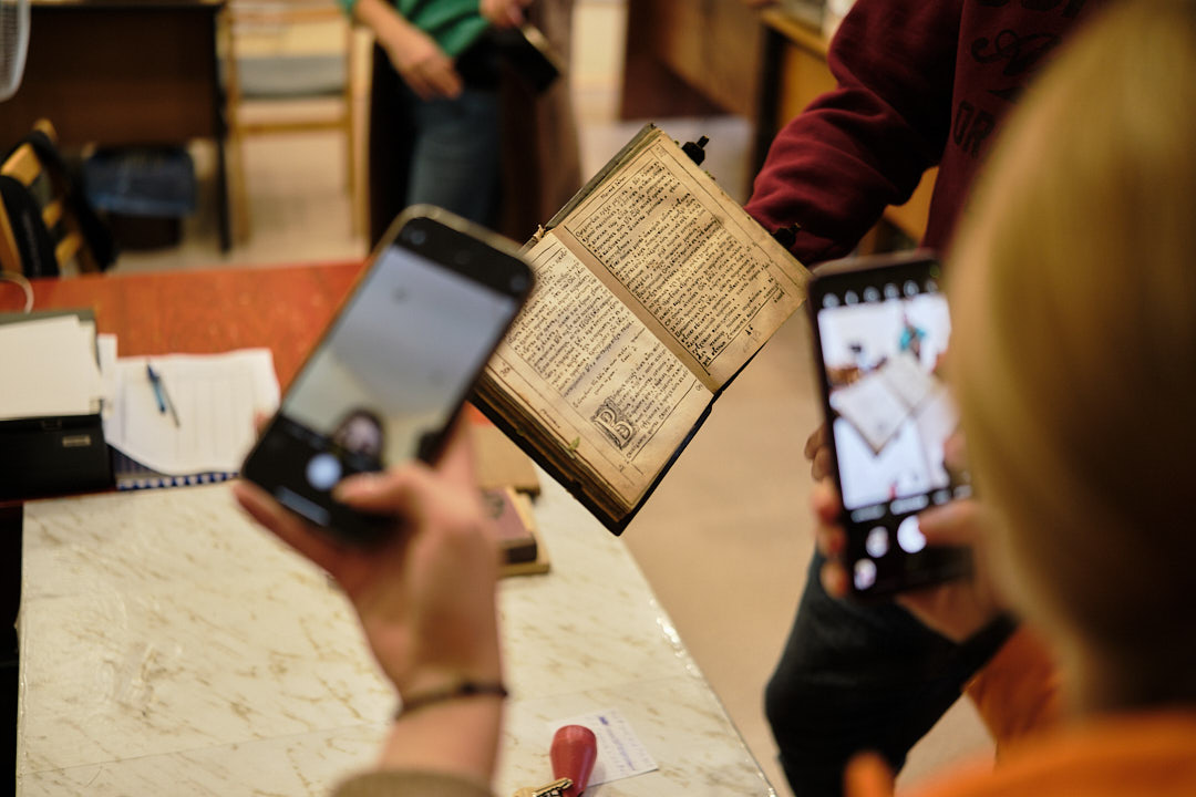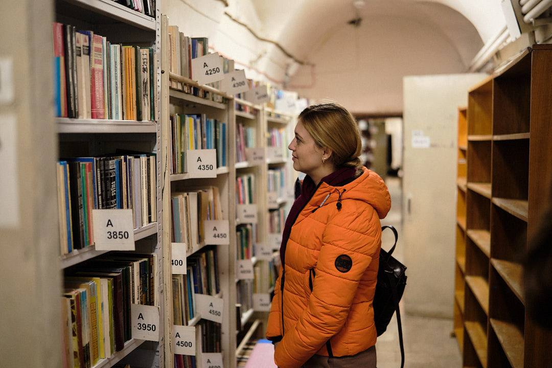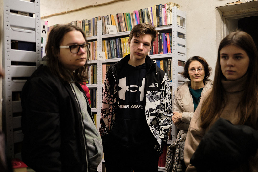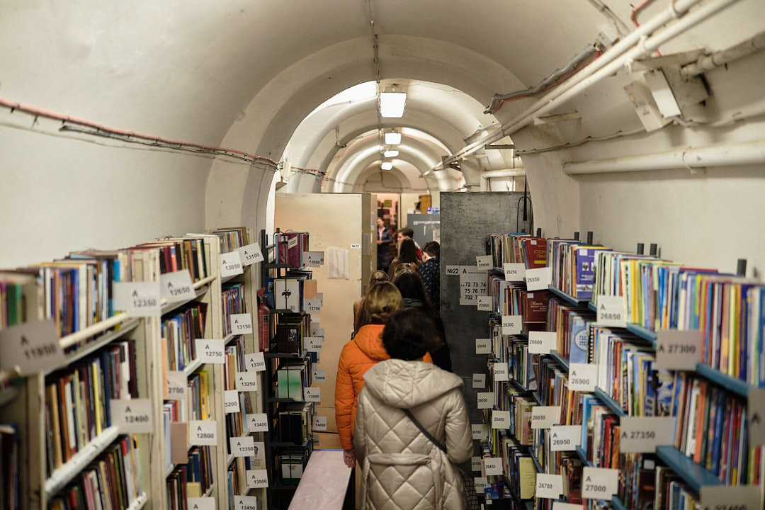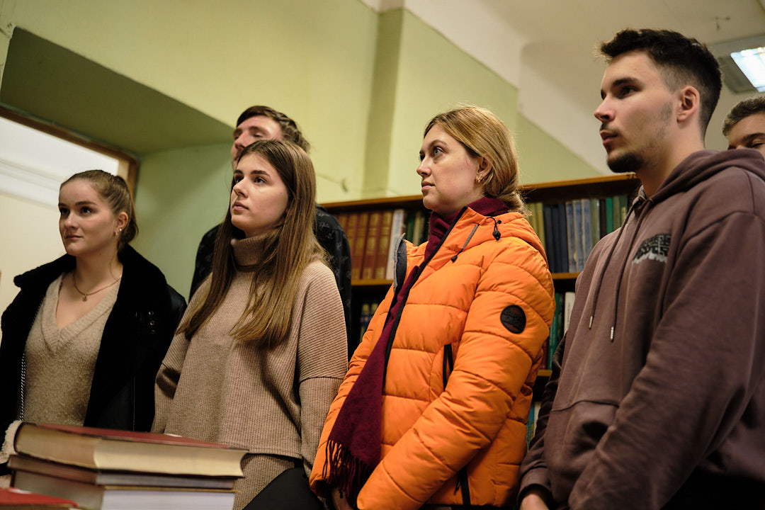 Далі учнів відвели у фонд бібліотеки корпусу № 24, де фахівці відділу організації і зберігання фондів розповіли про фонд книгозбірні, його зберігання, продемонстрували етапи отримання та опрацювання читацьких вимог з відділу обслуговування читачів, підбір літератури та відправки її за допомогою технічного ліфта.