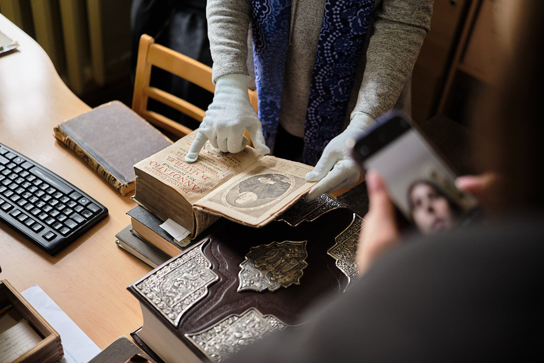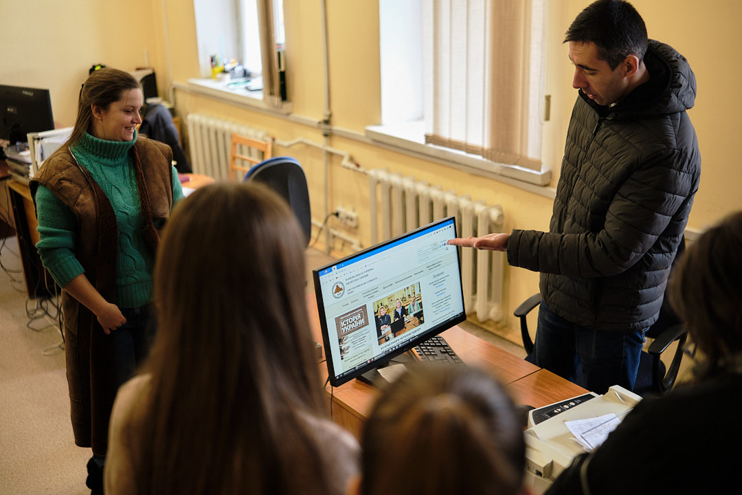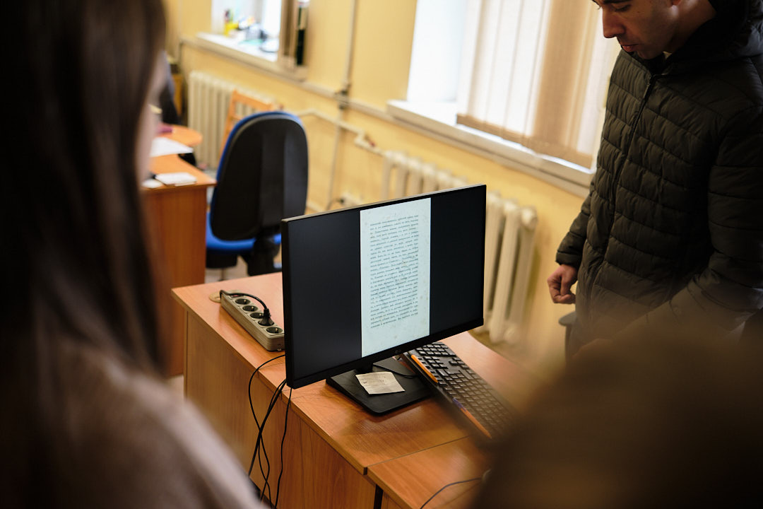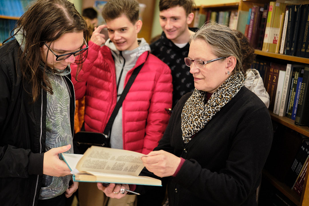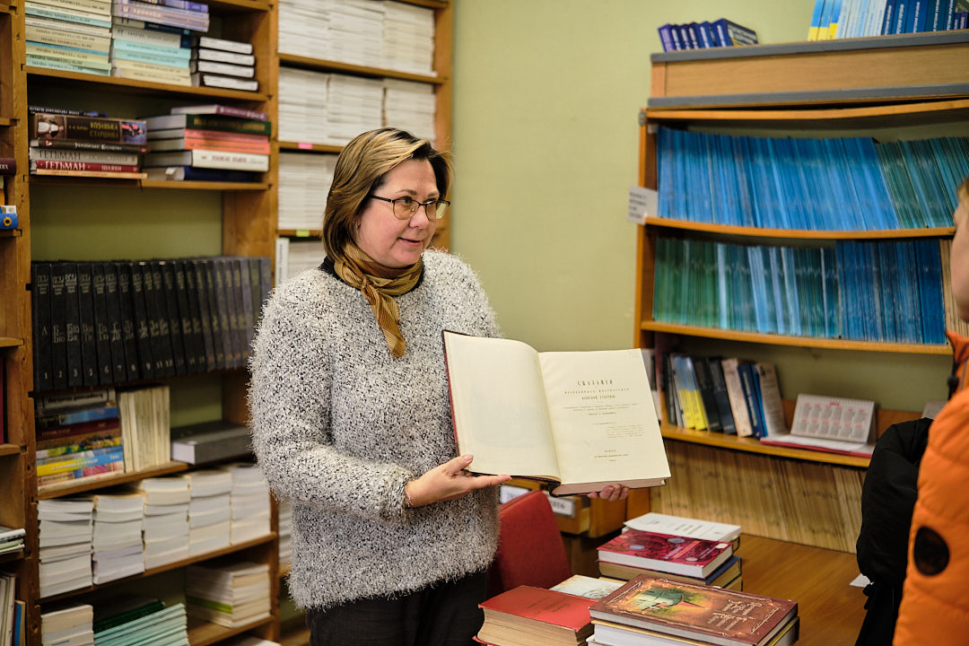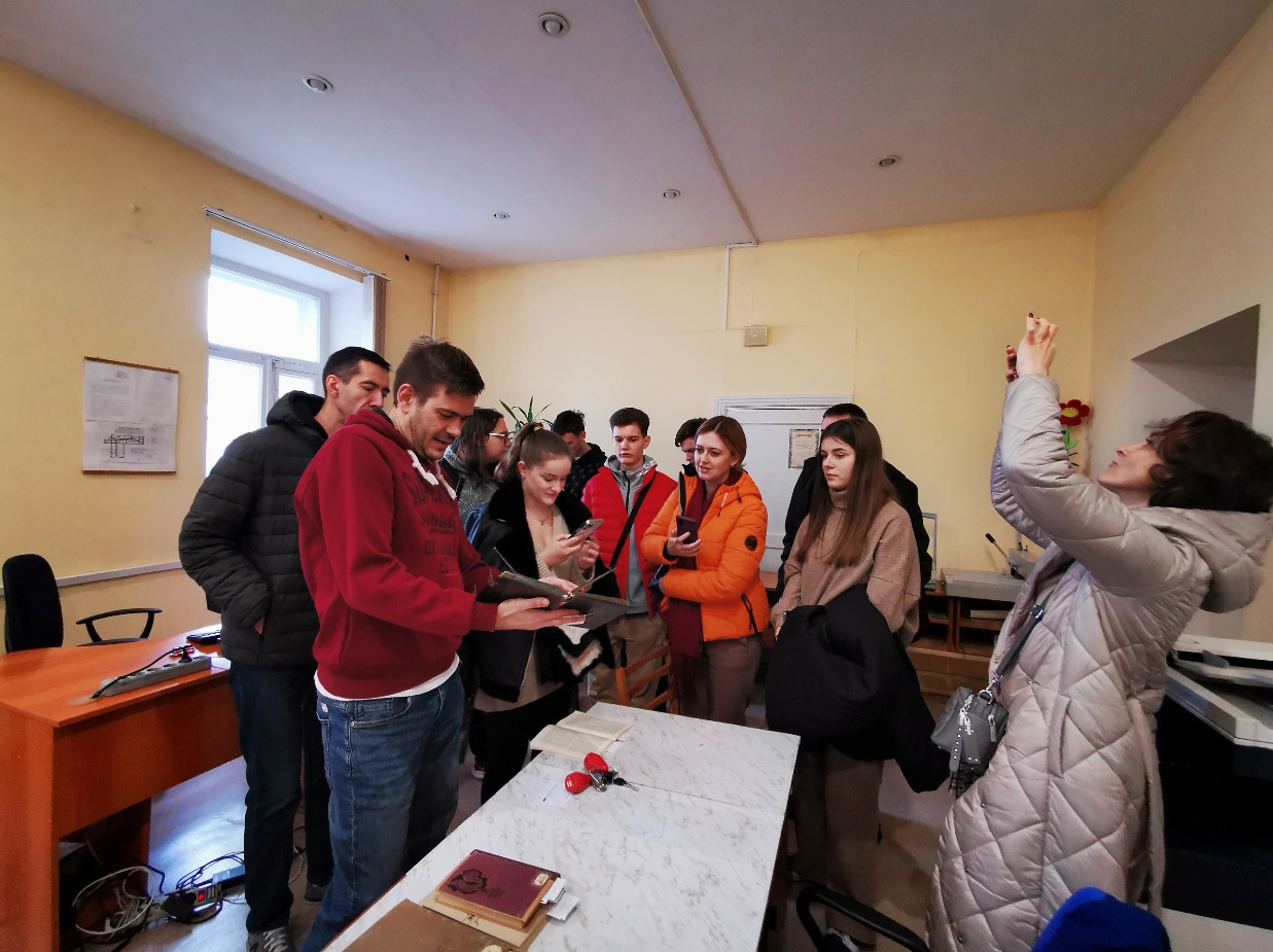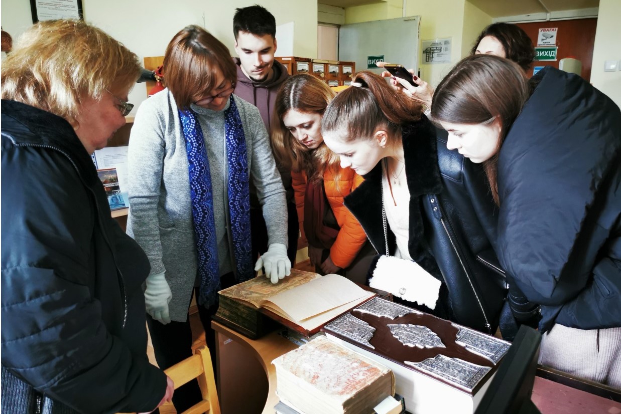 У відділі довідково-бібліографічної та науково-інформаційної роботи гостям розповіли про основні напрями роботи відділу, представили проєкт "Нематеріальна культурна спадщина в документних джерелах", його наповнення та ціннісний характер. Представили видання з історії України "З найдавніших часів до сьогодення", також літературу суміжних історичних дисциплін, мовознавства, історії держави і права, археології, нумізматики, генеології, етнографії. На завершення книгу Тараса Шевченка "Заповіт" мовами народів світу, гості із задоволенням продекларували польською, німецькою та іспанською мовами.