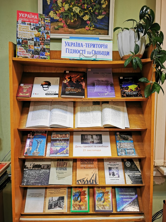 У відділі довідково-бібліографічної та науково-інформаційної роботи експонується книжково-журнальна виставка "Україна - територія Гідності та Свободи".