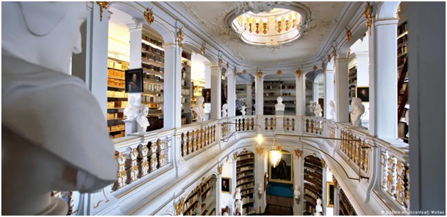 Окрасою бібліотеки є Триповерхова зала у стилі рококо, яка була побудована в 1766 році.