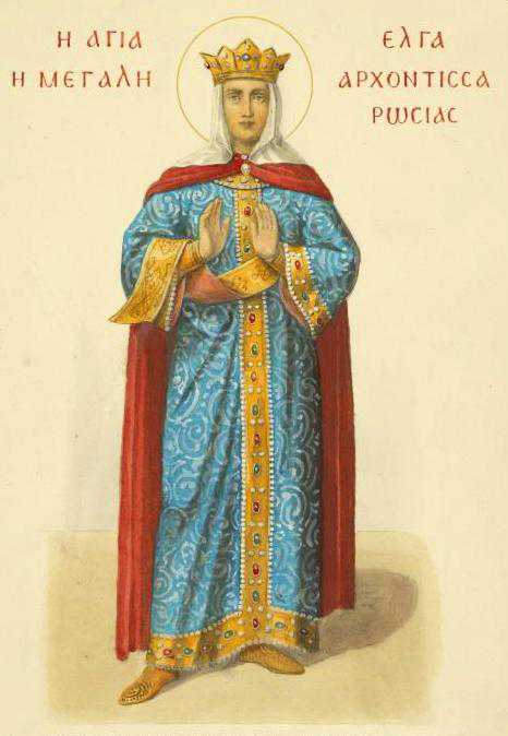 Княгиня Ольга (у хрещенні Олена) правила Київською Руссю з 945 по 960 роки. Дружина Ігоря Рюриковича, мати Святослава Хороброго. Відома тим, що знищила Древлянське племінне княжіння і прийняла хрещення від імператора Константина VII Багрянородного.