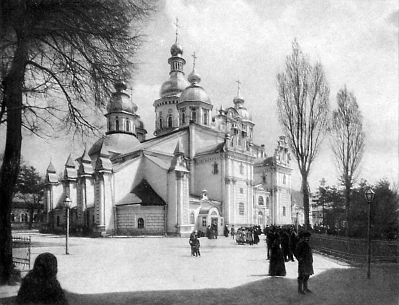На фото: Михайлівський собор вигляд з заходу 1910 р. з сайту https://kp.ua/kiev/420127-deviat-vekov-zlatoverkhoho-sobora