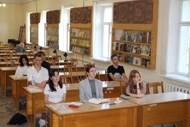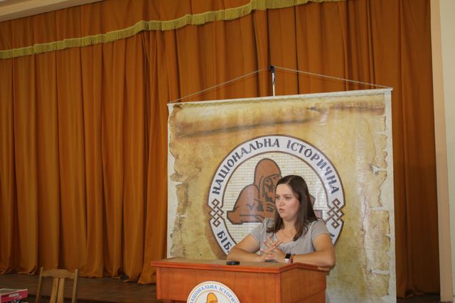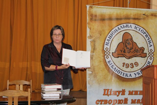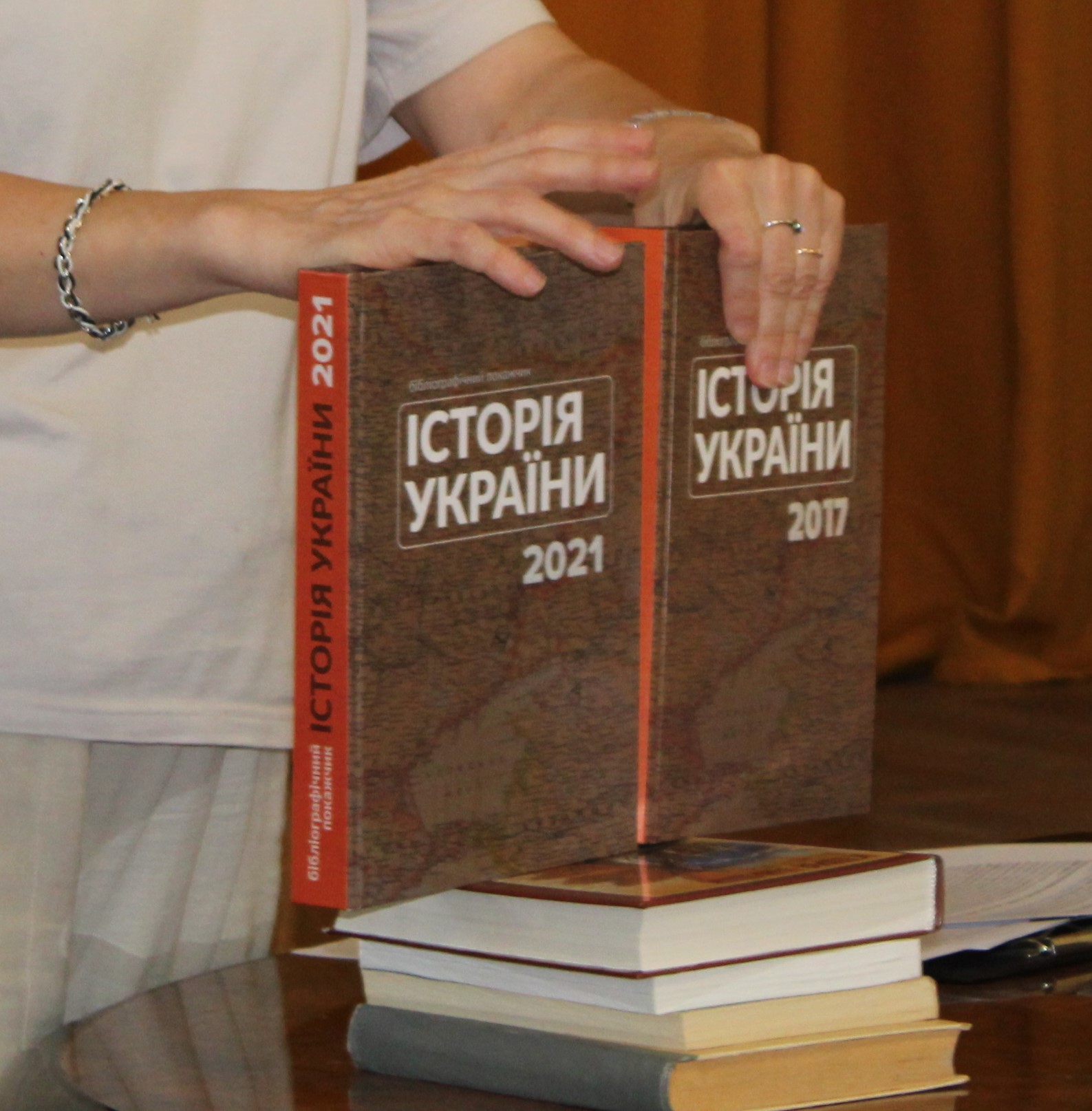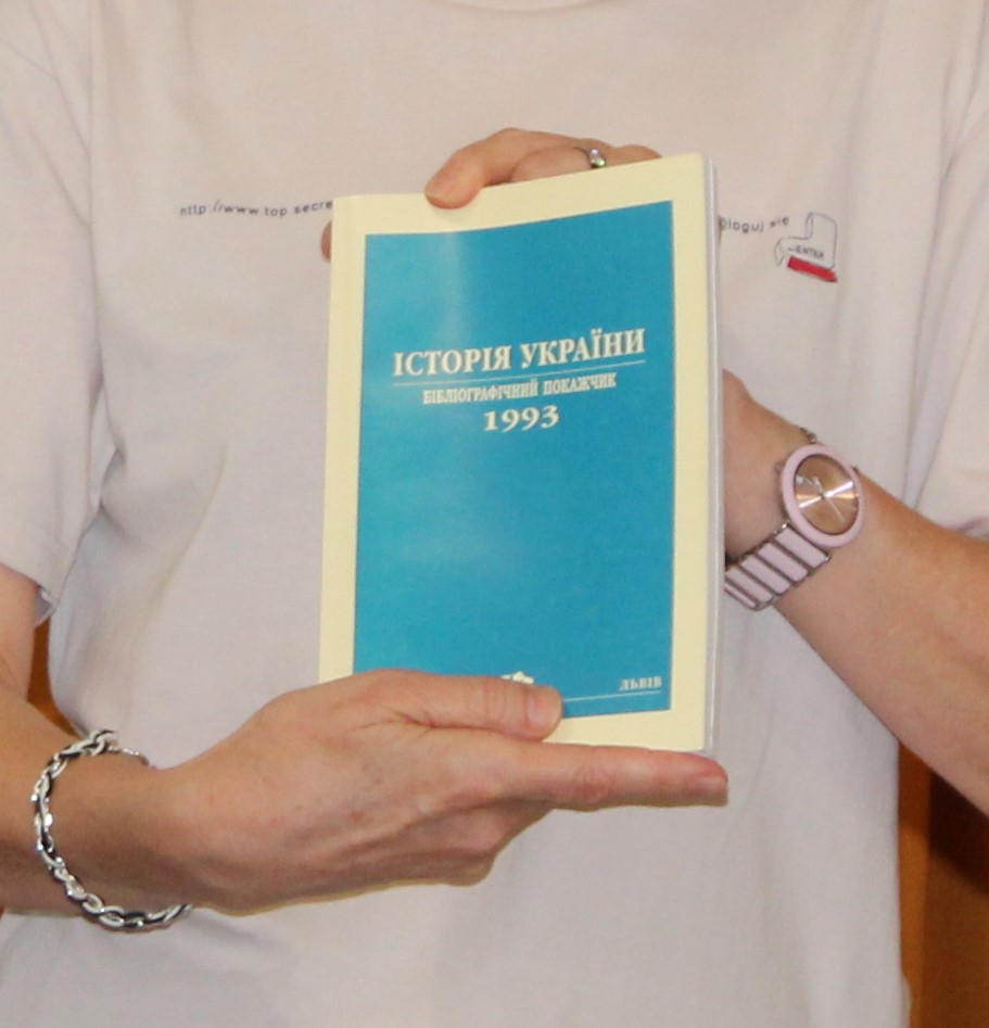 Завідувачка науково-бібліографічного відділу Дарія Стегній презентувала бібліографічні видання НІБУ, які стануть в пригоді молодим науковцям. Завідувачка сектором довідково-бібліографічної роботи Оксана Чугіна розповіла про довідково-енциклопедичні видання із фонду відділу, а завідувачка сектором науково-інформаційної роботи Алла Новицька ознайомила екскурсантів із виставками що експонуються у читальній залі та продемонструвала мікроформу з книги Петровский С. Киев его святини и досотопримечательности, яку переглянули за допомогою спецільного апарату «Екран».