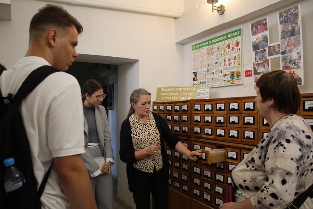 Гостей зустріла фахівчиня відділу культурних комунікацій Тетяна Науменко та розповіла про структуру бібліотеки. Учні переглянули відеоролик – «Історична довідка про бібліотеку».