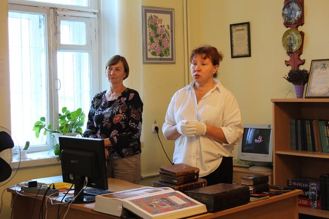 Про колекції фонду стародруків розповіла Світлана Смирнова, завідувачка науково-дослідного відділу стародруків, цінних та рідкісних видань та фахівець відділу Наталія Горська.