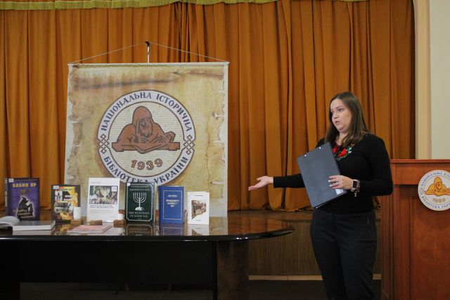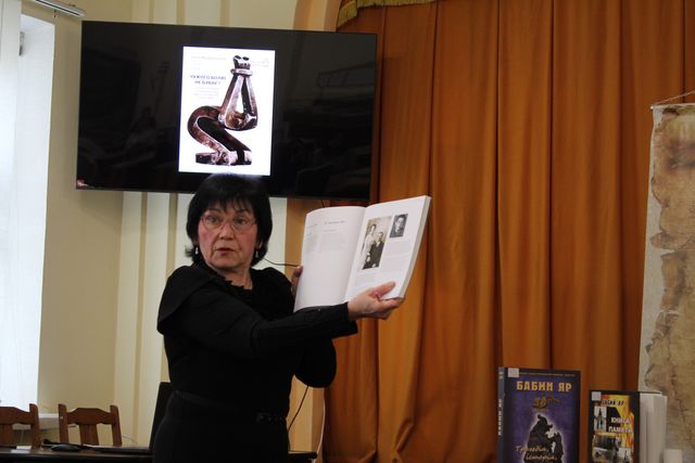 Після цього виступила Галина Єфіменко, фахівець відділу довідково-бібліографічної та науково-інформаційної роботи. Вона презентувала книжкову виставку "День пам'яті трагедії Бабиного Яру", акцентуючи на ключових виданнях, що розкривають теми трагедії. Галина глибше розкрила проблему трагічних подій, цитуючи мемуари, що передавали гіркі спогади тих, хто пережив ці жахливі дні. Вона також згадала про вдячність єврейського народу людям, які намагалися їх врятувати. Зокрема, наголосила, що на їхню честь були посаджені дерева, як символ пам'яті та шани до тих, хто ризикував своїм життям заради інших.