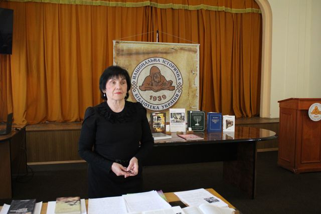 Після цього виступила Галина Єфіменко, фахівець відділу довідково-бібліографічної та науково-інформаційної роботи. Вона презентувала книжкову виставку "День пам'яті трагедії Бабиного Яру", акцентуючи на ключових виданнях, що розкривають теми трагедії. Галина глибше розкрила проблему трагічних подій, цитуючи мемуари, що передавали гіркі спогади тих, хто пережив ці жахливі дні. Вона також згадала про вдячність єврейського народу людям, які намагалися їх врятувати. Зокрема, наголосила, що на їхню честь були посаджені дерева, як символ пам'яті та шани до тих, хто ризикував своїм життям заради інших.