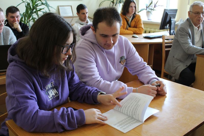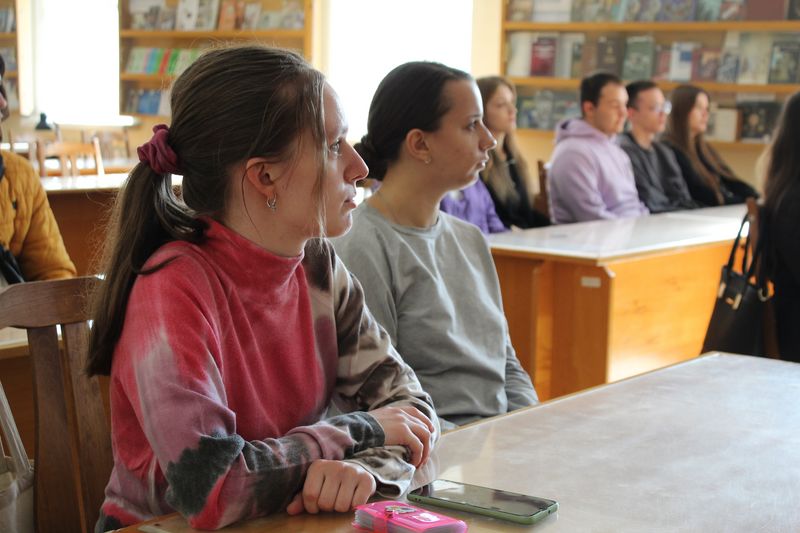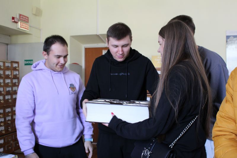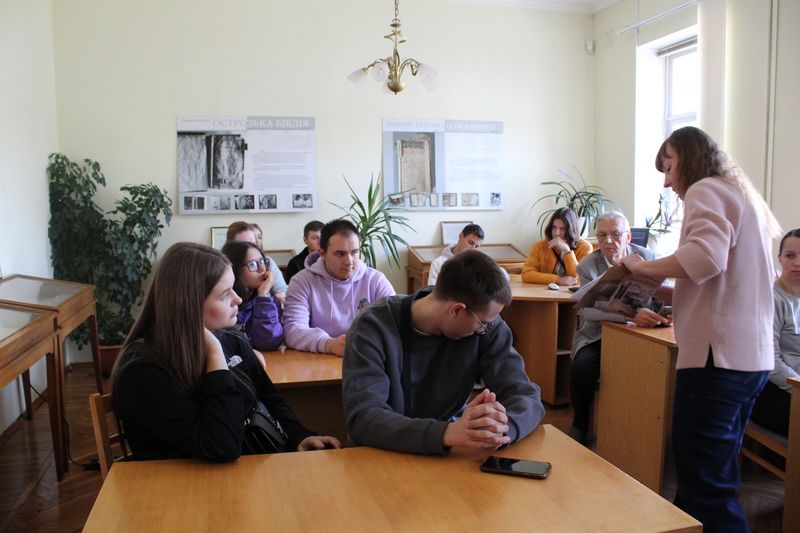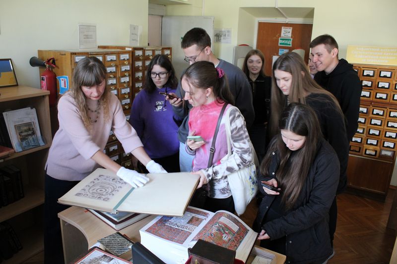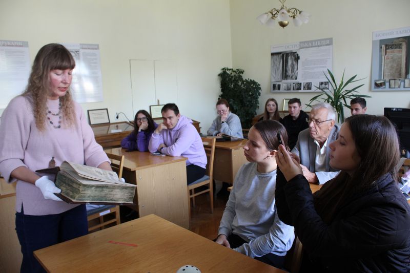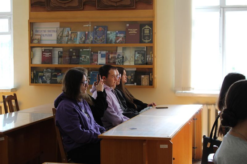 Фахівчиня відділу культурних комунікацій Тетяна Науменко розповіла про структуру бібліотеки. Студенти переглянули відеоролик «Історична довідка про бібліотеку» та фрагмент з документального фільму "Таємничі манускрипти" (1+1) про митрополита Георгія Ярошевського та рукопису «Помяник» з фонду НІБУ.