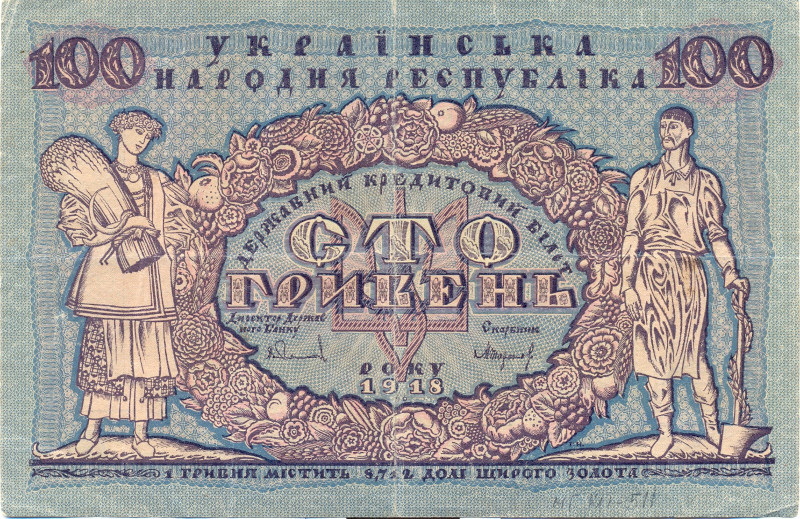 Гривнями називалася й валюта часів Визвольних змагань 1917-1921 рр. Першу банкноту - державний кредитовий білет вартістю 100 гривень було емітовано 5 січня 1918 р. Його вартість дорівнювала 17,424 долі щирого золота (1 доля = 0,044 г золота). Дизайн банкноти розробив видатний український художник Георгій Нарбут.