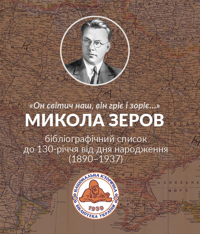 Представляємо електронне видання підготовлене до 130-річчя від дня народження Миколи Костянтиновича Зерова (1890–1937). Бібліографічний список містить описи праць митця та джерел про нього, що відображені в електронних ресурсах та бібліографічних покажчиках Національної історичної бібліотеки України. Вебпосилання на повний текст джерел, які є у вільному доступі онлайн, прикріплені до бібліографічних описів.