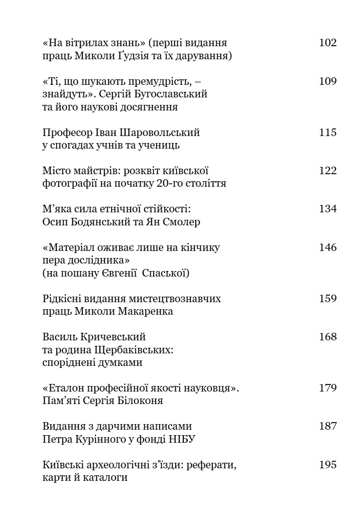 У виданні представлено 20 нарисів книгознавчого проєкту «Неповторні риси книг», розміщених на вебсайті Національної історичної бібліотеки України впродовж 2016–2024 років. Нариси є результатом досліджень написів на раритетних примірниках книг із фонду науково-дослідного відділу стародруків, цінних та рідкісних видань і засвідчують зв’язок книгознавства з історичною біографістикою. Для книгознавців, бібліографів, істориків, біографістів та усіх, хто цікавиться історією української культури.