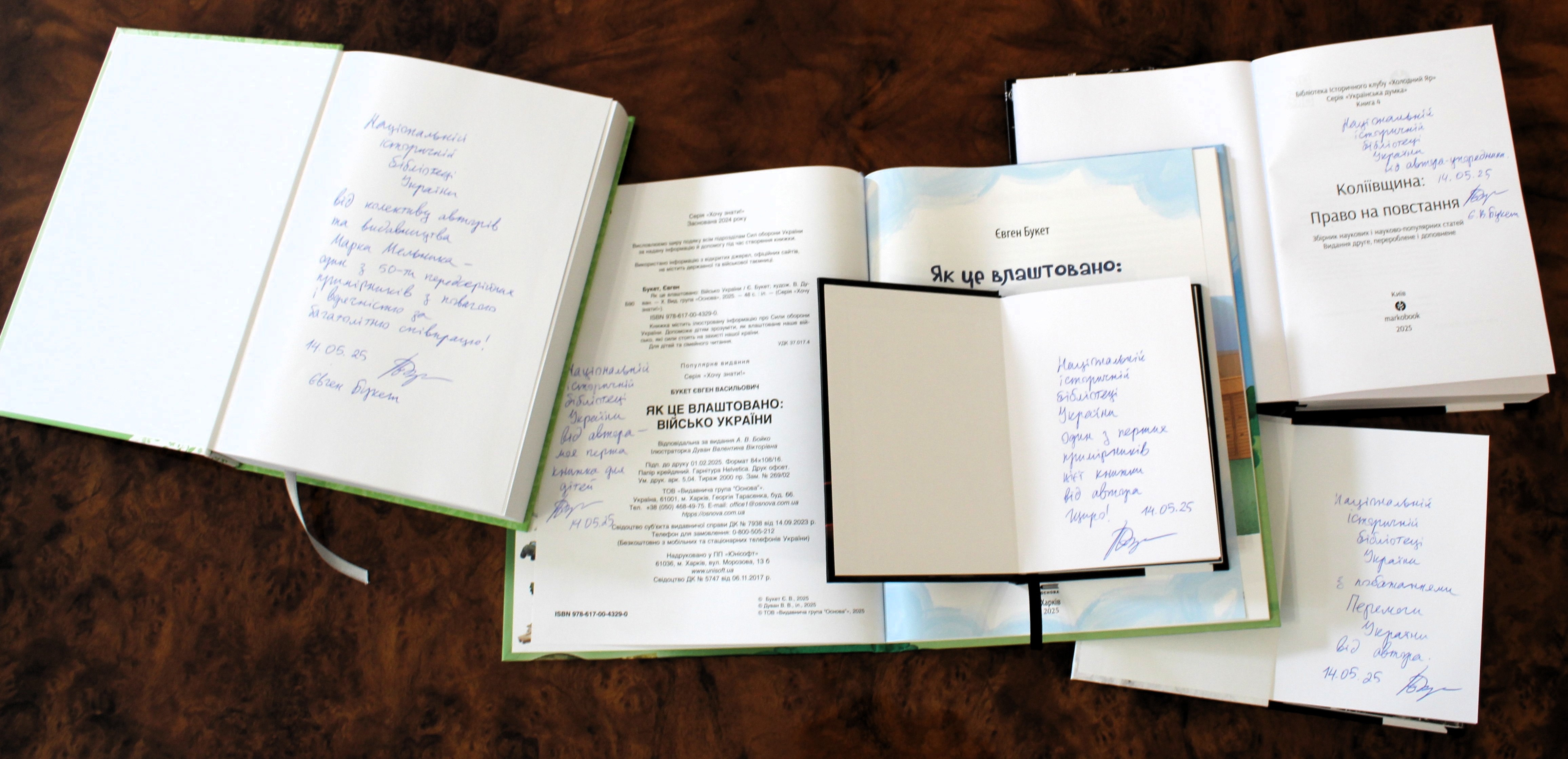 Національна історична бібліотека України висловлює щиру подяку нашому постійному читачеві – українському краєзнавцеві, журналісту й громадському діячеві Євгену Васильовичу Букету – за багаторічну співпрацю, глибоку повагу до історії, неоціненний внесок у збереження національної пам’яті та за передані до фонду Бібліотеки нові видання.
