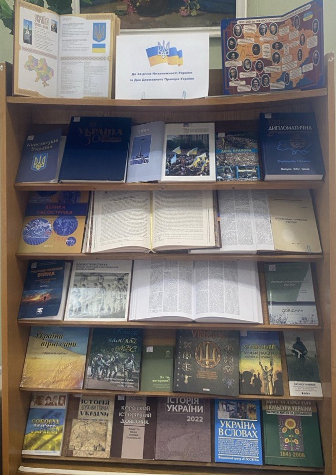 З нагоди Дня Незалежності України та Дня Державного Прапора України у відділі довідково-бібліографічної та науково-інформаційної роботи Національної історичної бібліотеки України для читачів представлено книжкову виставку з довідково-бібліографічного фонду. На виставці презентовано видання, присвячені історії української державності, символіці Державного Прапора та ключовим подіям, що формували сучасну незалежну Україну.