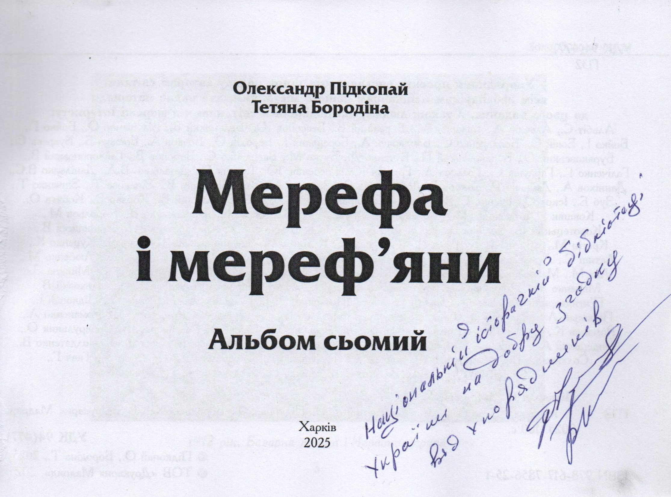 Висловлюємо щиру подяку авторам – Олександру Підкопаю, краєзнавцю, члену Національної спілки письменників України, почесному громадянину міста Мерефа Харківської області та Тетяні Бородіній за подаровані Національній історичній бібліотеці України краєзнавчі фотоальбоми «Мерефа і мереф’яни» (Вип. 7, 8). Попередні 6 альбомів вже зберігаються в бібліотеці.