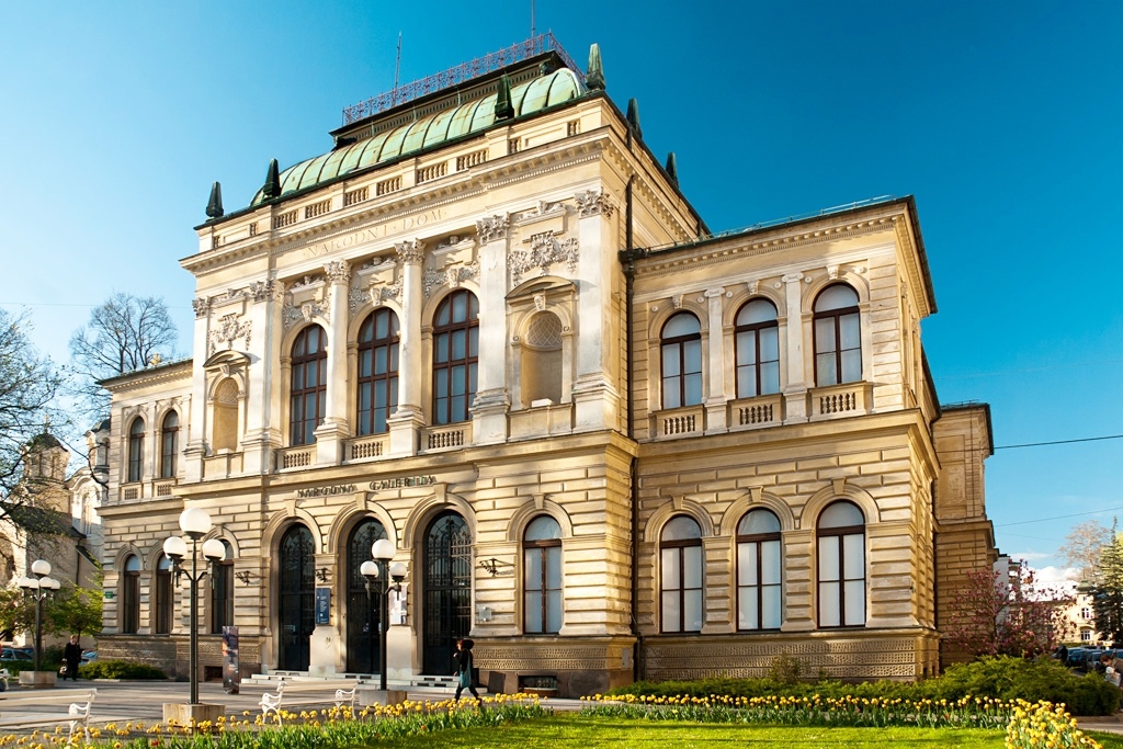 Існуюча будівля була побудована в 1896 році під час правління мера Івана Хрібара, який прагнув перетворити Любляну у столицю всіх словенських земель. Проект будівлі розроблений чеським архітектором Франтішеком Скарброутом. Спочатку будівля використовувалася Словенським культурним центром «Народний дім» для розміщення різних культурних об'єднань.