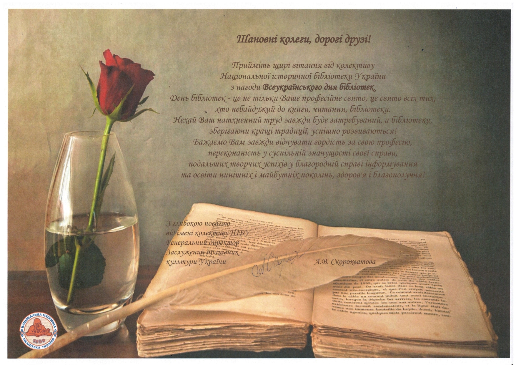 Шановні колеги, дорогі друзі! Прийміть щирі вітання від колективу Національної історичної бібліотеки України з нагоди Всеукраїнського дня бібліотек ! |
