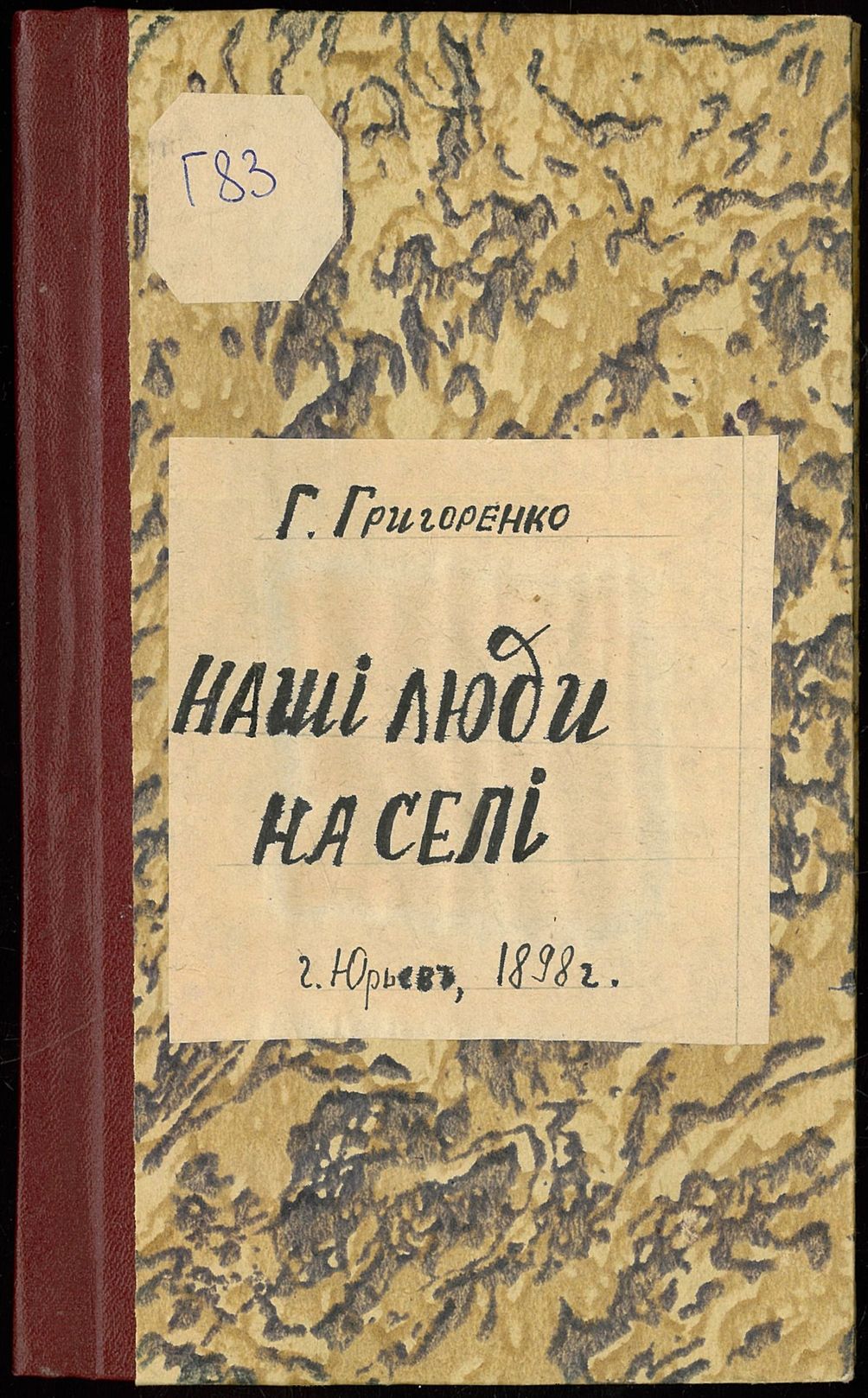 Григоренко, Грицько. Наші люди на селі / Г. Григоренко. - Юрьев : Друкарня К. Маттисена, 1898. - 45 с. - Оригін. загол. обкл. : Наши люды на сели.