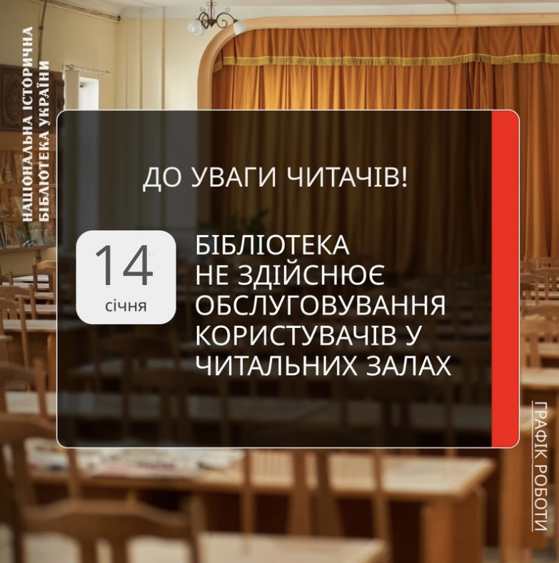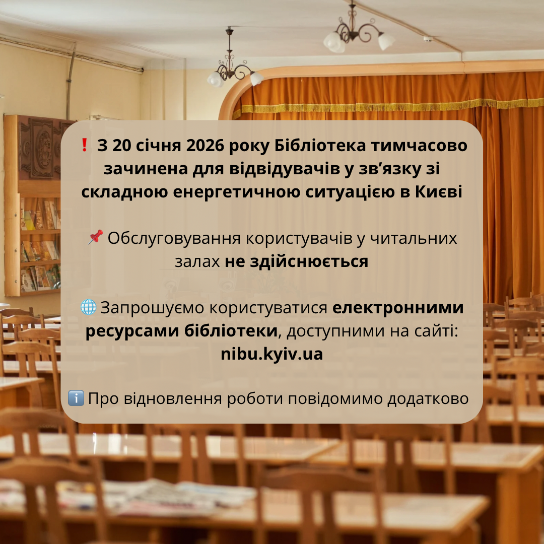 ⚠️ У разі оголошення повітряної тривоги у м. Києві обслуговування припиняється. Усі читачі та працівники полишають приміщення Бібліотеки та прямують до найближчого укриття.