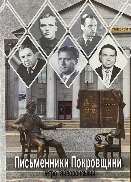 Гайворонський Петро. Письменники Покровщини / П. Гайворонський. - Вінниця : Нілан-ЛТД, 2021. – 211 с. Це видання про письменників, життя яких пов’язане з сонячною, родючою, гостинною і талановитою Покровською землею. Вони різні: одні на ній народилися, інші тут певний час жили, письменники й поети, літературознавці, публіцисти, шанувальники й оборонці української мови й російськомовні, відомі і навіть видатні, маловідомі й забуті. Були серед них віддані сучасній їм державі, й вимушені шукати кращої долі на чужині, були й такі, які безкомпромісно боролися з існуючим на той час політичним режимом. Об’єднує їх одне – шанування художнього слова й досконале ним володіння. Книга містить біографічні довідки, критичні статті та наводить твори письменників, які народилися, жили, творили в Покровську та Покровському районі (колись Гришинському, Красноармійському) та зробили вагомий внесок в розвиток літератури. |