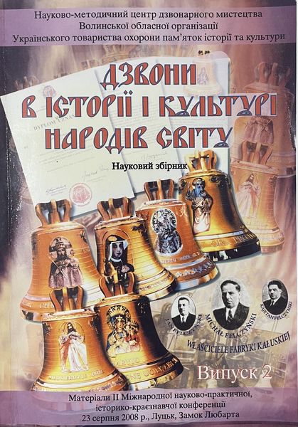 Дзвони в історії і культурі народів світу : матеріали ІІ Міжнародної науково-практичної, історико-краєзнавчої конференції 23 серпня 2008 р., Луцьк, Замок Любарта : науковий збірник. Вип. 2. / Українське товариство охорони пам’яток історії та культури. Волинська обласна організація. - Луцьк : Твердиня, 2008. – 147 с. : іл. Традиційний символ християнства – дзвони були відомі людям ще з давніх часів. За всю історію людства вони мали різноманітне призначення. З виникненням християнства дзвони входили до церковного вжитку і техніка лиття дзвонів упродовж віків розвивалася та постійно вдосконалювалася. Але дзвонарство, його посилене мистецьке значення, залишається поки що поза увагою українських дослідників. В даному збірнику представлені праці науковців, дослідників, кампанологів та краєзнавців, що висвітлюють історію виникнення дзвонів, їх використання в церковній практиці, розвиток дзвонарного мистецтва, аналізують дослідження невідомих сторінок історії дзвонів. |