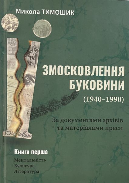 Тимошик Микола. Змосковлення Буковини (1940-1990) : за документами архівів та матеріалами преси : у 2 кн. Кн. 1. Ментальність. Культура. Література / М. Тимошик. - Чернівці : Букрек, 2023. – 446 с. : фот. У цьому виданні відомого вченого, колишнього чернівецького журналіста і редактора, осмислюються складні й суперечливі сторінки історії буковинського краю так званого під радянського періоду. Йдеться про своєрідний анатомічний зріз випробуваних московськими ідеологами на Великій Україні ще в 20-30-х роках ХХ ст. форм і методів комуно-більшовицької пропаганди із бомбування свідомості всього українського населення, зміни його ментальності, традицій, звичок і поведінки. |