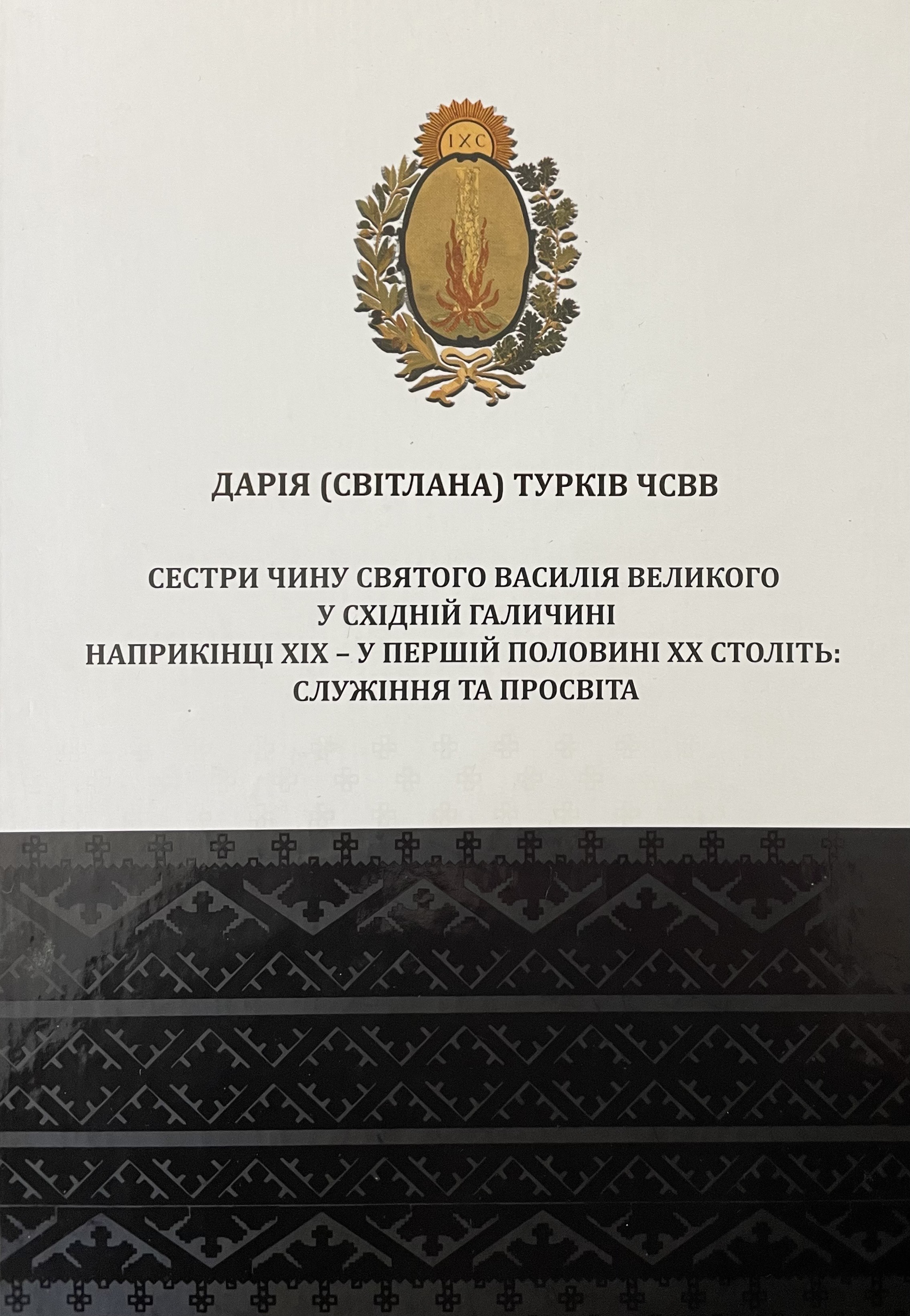 Турків Д. Сестри Чину Василія Великого у Східній Галичині наприкінці XIX – у першій половині XX століть: служіння та просвіта : монографія / Д. Турків ; наук. ред. І. Зуляк. - Львів : Манускрипт-Львів, 2023. - 455 с. : фот., іл. - (Бібліотека наукових і популярних творів сестер Чину Василія Великого / Генеральна управа сестер ЧСВВ). У монографії комплексно проаналізовано організаційні засади жіночих монас¬тирів ЧСВВ у Східній Галичині наприкінці XIX - першій половині XX cm., їхнє ста¬новлення, структуру та розвиток. Розкрито зміст і значення ключових реформ монастирів сестер-василіанок. Досліджено основні напрями діяльності сестер ЧСВВ окресленого періоду. Висвітлено роль чернечих осередків у творенні системи освіти, розвитку при¬ватного шкільництва, духовному вихованні та формуванні морально-етичних пріоритетів української молоді. З’ясовано, що діяльність сестер ЧСВВ була важ¬ливим засобом християнського і водночас національного виховання українства. Значною частиною пропонованого видання є публікація документів та світлин з історії сестер-василіанок. |