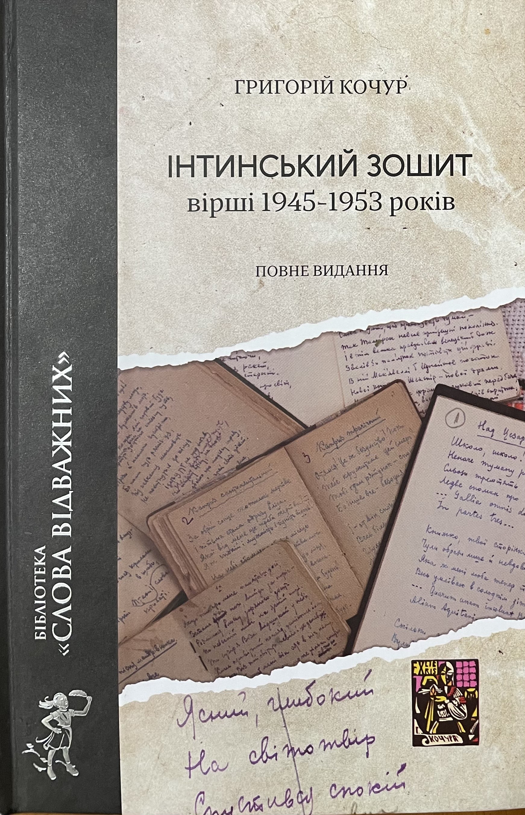 Кочур Г. Інтинський зошит : вірші 1945-1953 років / Г. Кочур. - Київ : ПЕНМЕН, 2024. – 143 с. : фот. – (Бібліотека «Слова відважних»). Ця збірка містить вірші, написані видатним українським поетом та перекладачем під час заслання в радянському таборі міста Інта у 1945-1953 роках. 27 поезій Григорія Кочура було опубліковано 1989 року. Ця книга містить ще 6 віршів Кочура, записаних Ярославою Людкевич під час спільного перебування в таборах та надіслано багаторічній очільниці Музею Григорія Кочура в Ірпені – пані Марії Кочур. |