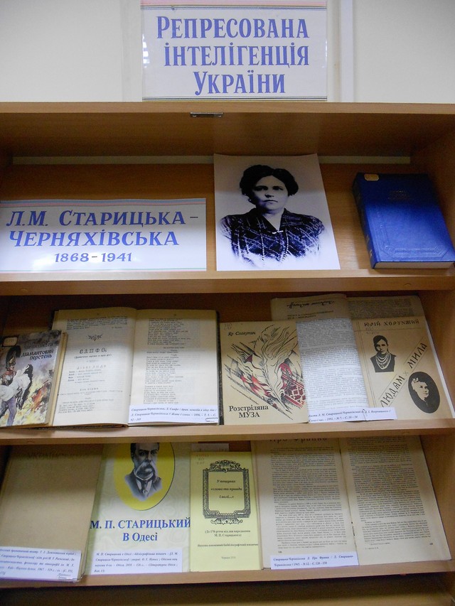 Шановні користувачі! Пропонуємо до Вашої уваги книжкову виставку «Репресована інтелігенція України», до 150-річчя від дня народження Людмили Михайлівни Старицької-Черняхівської (1868-1941), української письменниці, поетеси, драматурга, прозаїка, перекладача, мемуариста, громадського діяча.