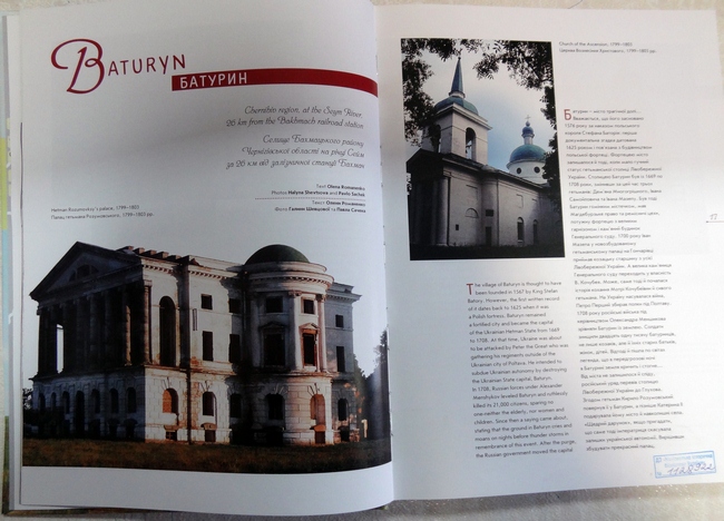 Удивительная Украина / авт.-сост. Т. Ф. Жабская. – Харьков : "Фактор", 2008. – 189 с. – (Украина. Вчера, сегодня, завтра). – [С. 54 : Батурин]. Шифр : В1588 / 9(с2) / У-301/ ДБ
