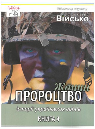 | Пророцтво Жанни: історії українських воїнів / ред. В. Буряченко. - Київ: Військо України, 2018. - 223 с.: іл.. - (Бібліотека журналу “Військо України”. Спецпроект, Історії українських воїнів; Кн. 4). | // Військо України. - 2018. - №07. - С. 51. |