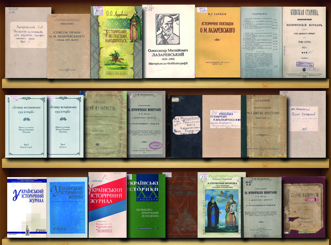 Герасименко Н. О. Подвижник історичної науки О. М. Лазаревський / Н. О. Герасименко // Український історичний журнал. – 2004. – №4. – С.90 – 94.; №5. – С.16 - 19.