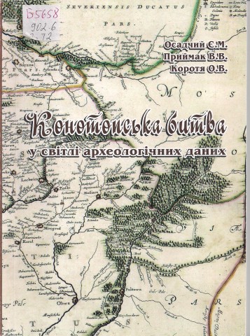 Осадчий Є. М., Приймак В. В., Коротя О. В. Конотопська битва в світлі археологічних даних : монографія / Управ. культ. Полтавської ОДА, Істор.-культ. заповідник «Більськ», Центр пам’яткознавства НАНУ і Укр. товариства охорони пам’яток історії та культури. – Полтава: ТОВ «Фірма «Техсервіс», 2009. – 114 с., іл. Монографію присвячено подіям 1658-1659рр. на території північно-західних районів Гетьманщини і північно-східних районів Слобожанщини. Робота спирається на археологічні дані, із залученням картографічних матеріалів та писемних джерел; здійснювалось вивчення колекцій музеїв, пам’яток археології, городищ та їх укріплень. |
