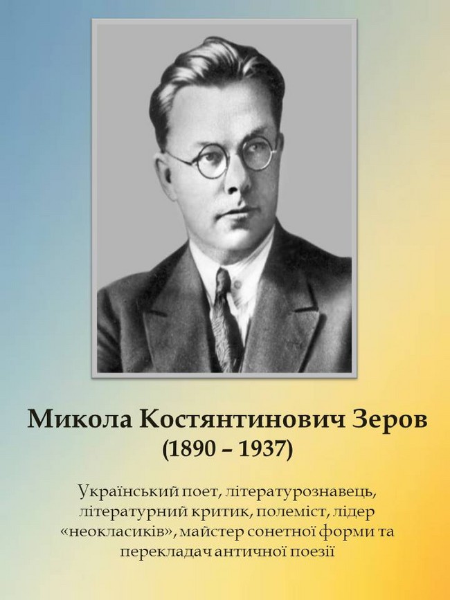 Микола Зеров справедливо вважається лідером "неокласиків" – групи поетів, перекладачів, літературознавців і критиків, до якої зараховують також О. Бургардта, М. Драй-Хмару, М. Рильського і І. Филиповича. Хоча вони і формально не утворювали окремої літературної організації, можна вважати їхню спільність у високих естетичних критеріях, що полягали в пріоритеті загальнолюдських цінностей у мистецтві. У своїй оригінальній поетичній творчості Зеров віддав перевагу сонетам і александрійським віршам, які вирізнялися досконалістю форми і глибинним філософським проникненням у буття. Як перекладач він здійснив багато в чому неперевершені на сьогодні інтерпретації латиномовної античної спадщини, французьких "парнасців", а також творів багатьох інших класичних поетів.