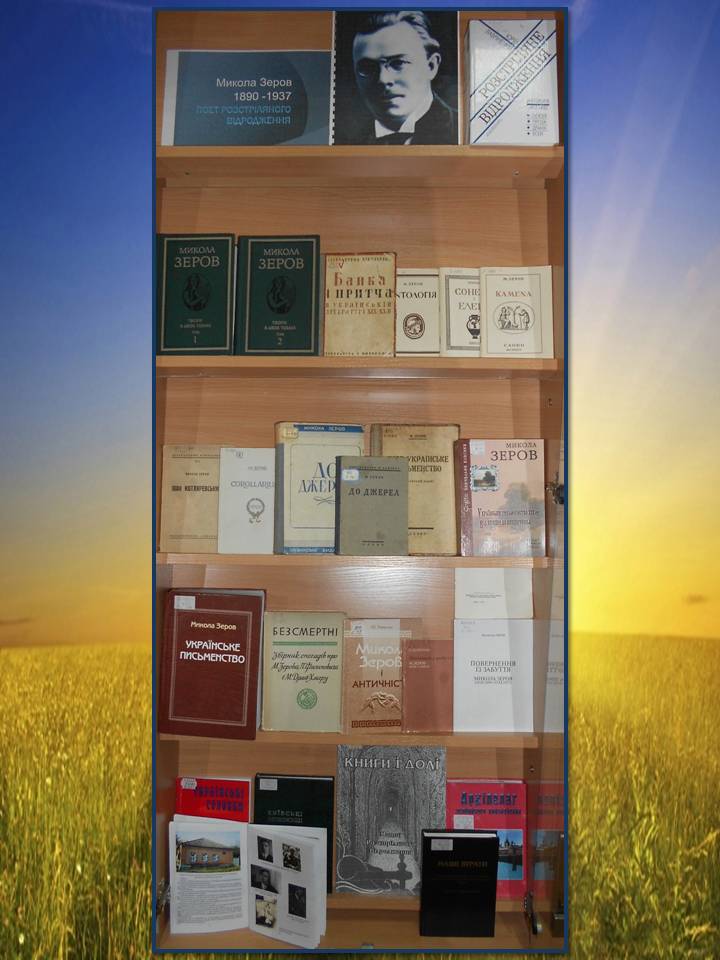 Шановні користувачі! З 20 вересня у Виставковомі залі в рамках рубрики «Репресована інтелігенція України» експонується книжкова виставка «Микола Зеров – поет Розстріляного Відродження».