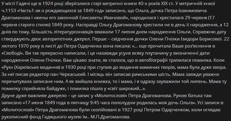 Олена Пчілка (Ольга Петрівна Драгоманова-Косач) народилася 29 (17) червня (липня)* 1849 року в м. Гадячі на Полтавщині.