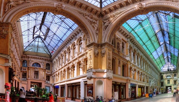 Історична будівля Одеси, в який розташовані готель і криті торговельні ряди, є пам’яткою історії та архітектури кін.19 – поч. 20 століття. Будівля пасажу була зведена у стилі модерн у 1899 році за проектом Л. Влодека. Будівля має 4 поверхи, на першому розташовані магазини, інші поверхи займає готель. Внутрішній двір оздоблений чисельними скульптурами.