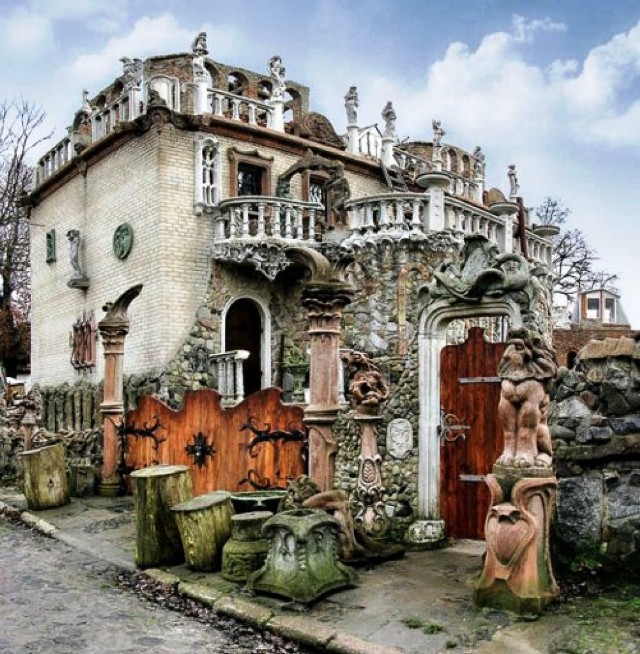 Проект будинку розробив волинський архітектор Ростислав Метельницький. Подвір’я, стіни та дах будинку прикрашають кам’яні скульптури різних стилів. Вхід до будинку прикрашає родинний вензель – Н. М. Г. На фронтоні будинку розміщено барельєф вагою у 1,5 тонни із зображенням усіх членів сім’ї скульптора.