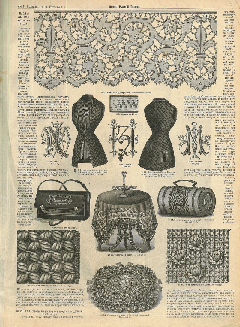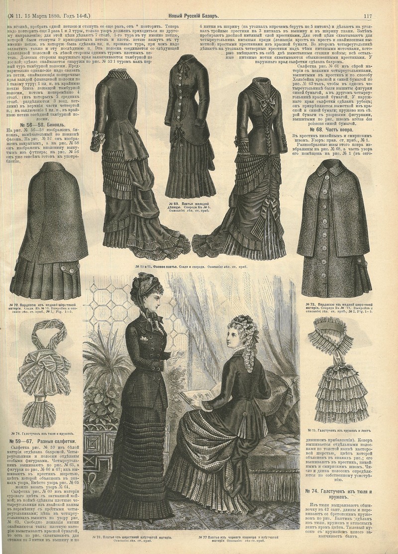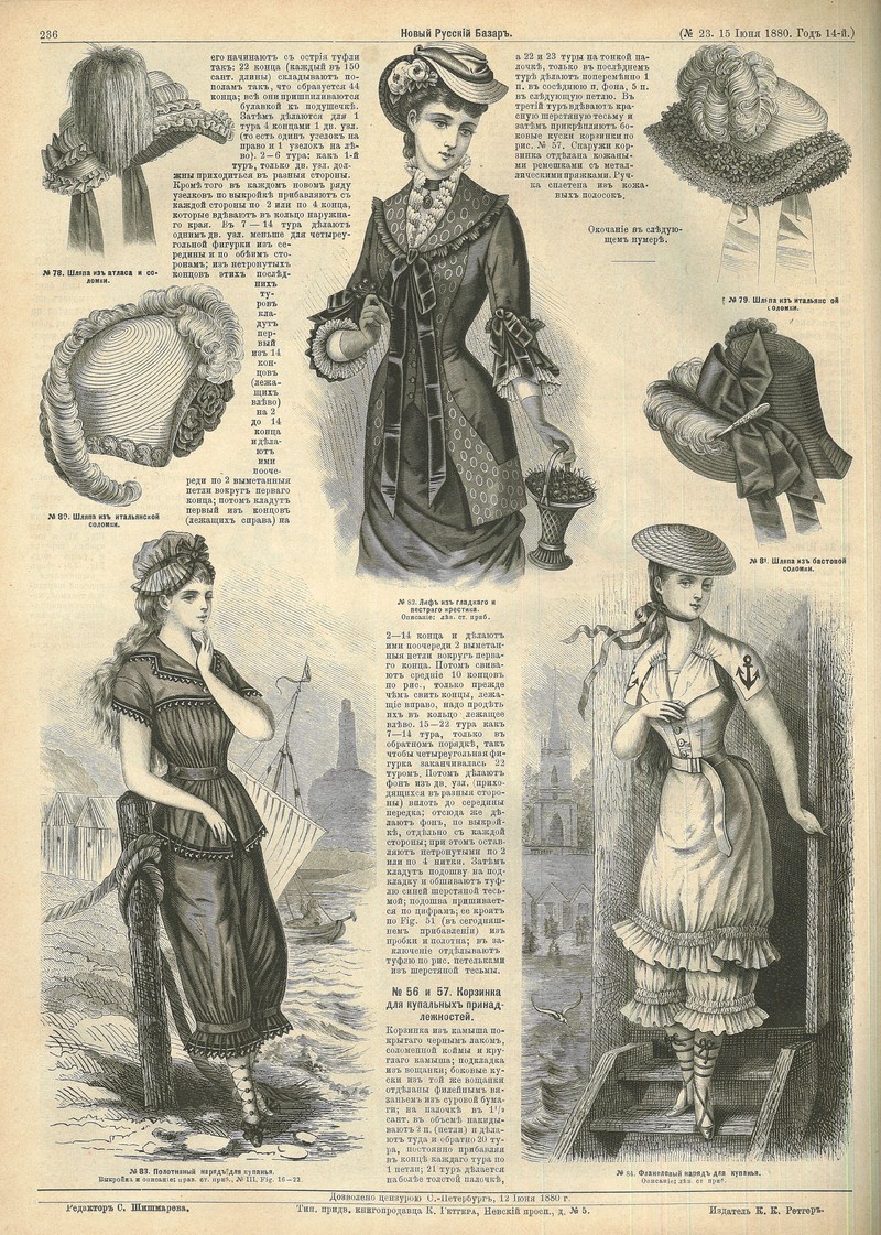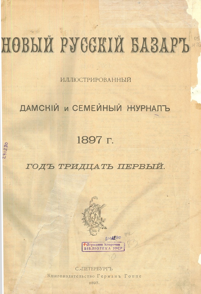 Новый русский базар : иллюстрированный дамський [модный] и семейный журнал. - Санкт-Петербург : Герман Гоппе; Тип. К. К. Ретгера, 1867-1898 1897: № 1-48 1880: № 1-48 Журнал видавався з 1867 по 1898 рік у Санкт-Петербурзі. Журнал виходив чотири рази на місяць (тобто 48 номерів на рік - 24 модних і 24 літературних номерів), великого формату – in-folio, містив безліч розфарбованих гравюр про новинки моди.
