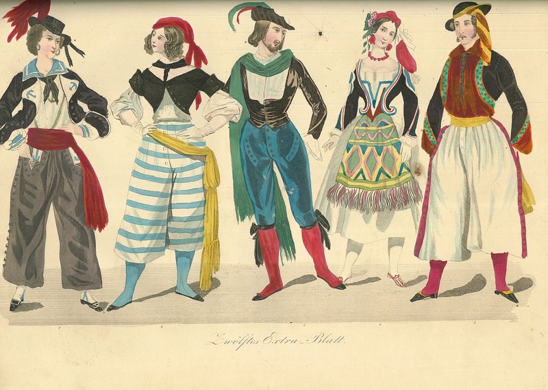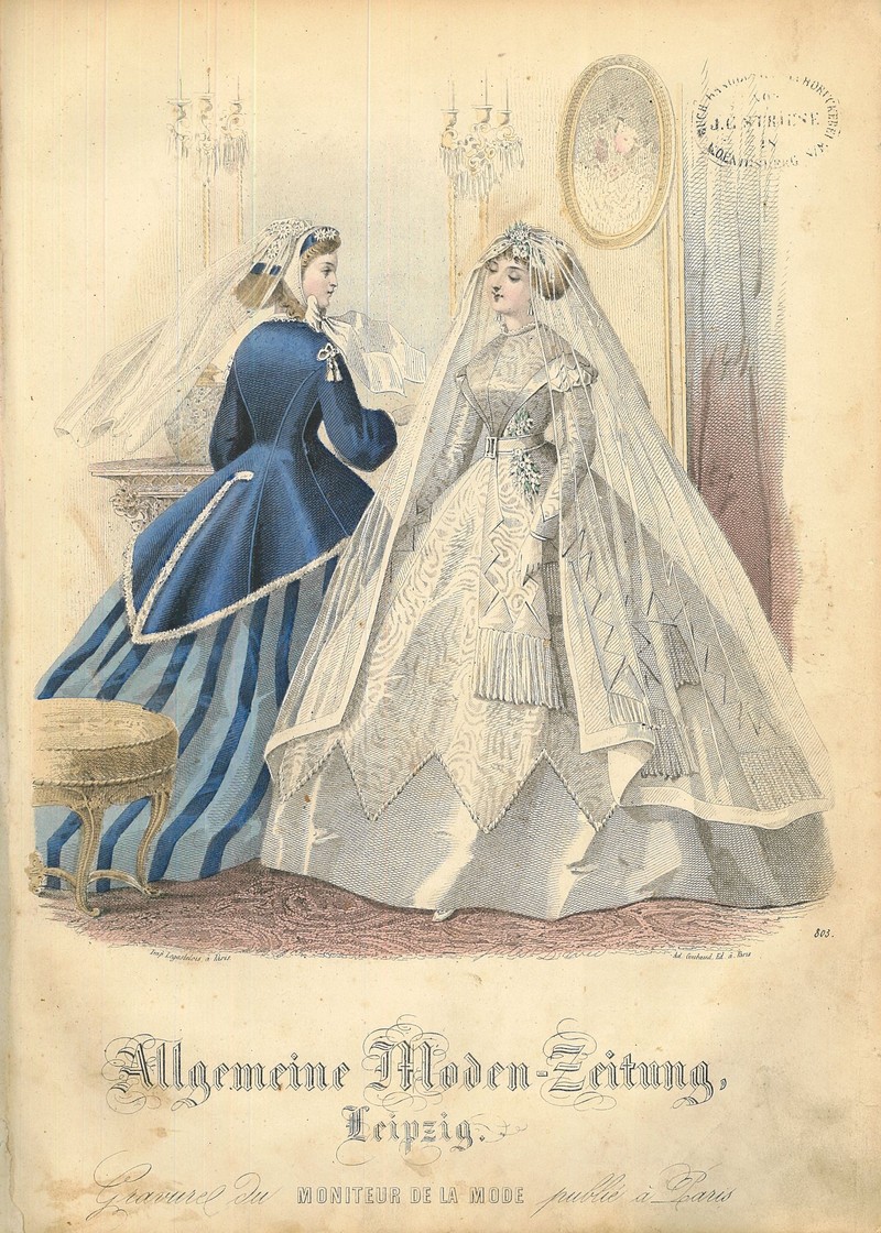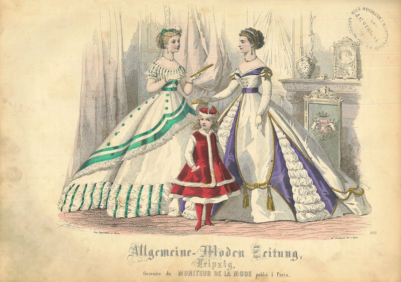 Журнал «Allgemeine Moden-Zeitung» виходив в Лейпцигу з 1806 по 1903 рік, мав різні формати та періодичність. Редактором видання спочатку був Йоганн Адам Бергк (1769-1834), професор філософії Лейпцизького університету, що надавало журналу серйозність і академічність. Як і інші журнали подібної спрямованості того часу, видання знайомило читачів з інформацією про модні товари, сучасні тенденції в одязі та інтер'єрі, останні світські новини та культурні події. При описі модних туалетів пропонували купувати продукцію вітчизняного виробництва. Модні журнали були дуже популярні в буржуазних колах кінця 18 століття, особливо якщо вони містили «модні принти» - відбитки, які часто були розмальовані аквареллю. Вони представляли громадськості те, що було модно, і часто встановлювали тенденції. |