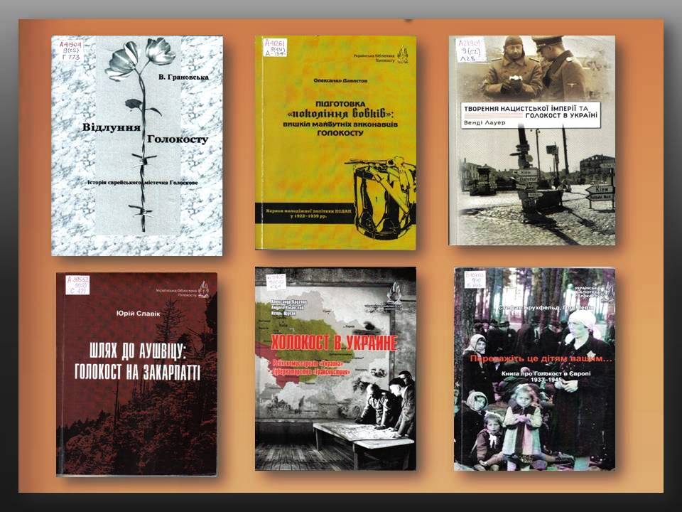 В книгах, представлених на даній виставці, описано жахи цих трагедій, які досі залишають гіркий слід у людській памяті.