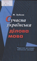 Зубков М. Г. Сучасна українська ділова мова : підручник / М. Г. Зубков. – 4-те вид., доп. - Харків : Торсінг, 2003. – 448 с. Підручник містить характеристику функціональних стилів сучасної української літературної мови. Наведено типові зразки рукописних документів, їх класифікацію, складові та вимоги до укладання. Правила в розділі «Орфографія» враховують останні зміни правопису й акцентують увагу на особливостях уживання частин мови в діловодстві. |